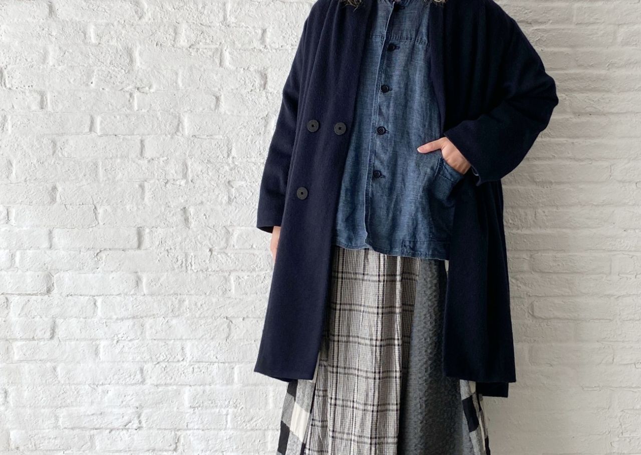 コートはデニムのブルーに合わせてネイビーにしました。