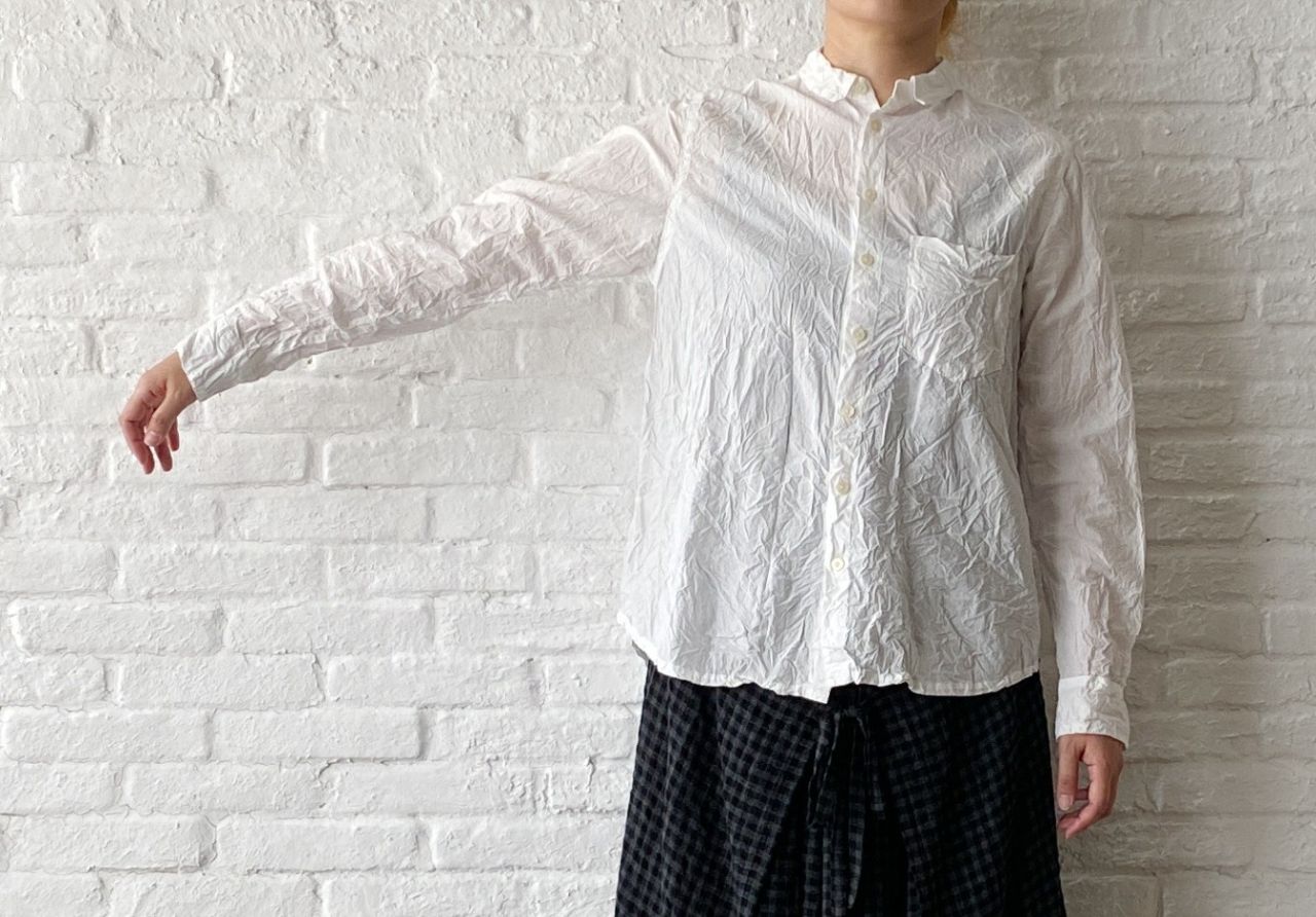 定番の長袖袖シャツに、立体的的なシワをかけました。