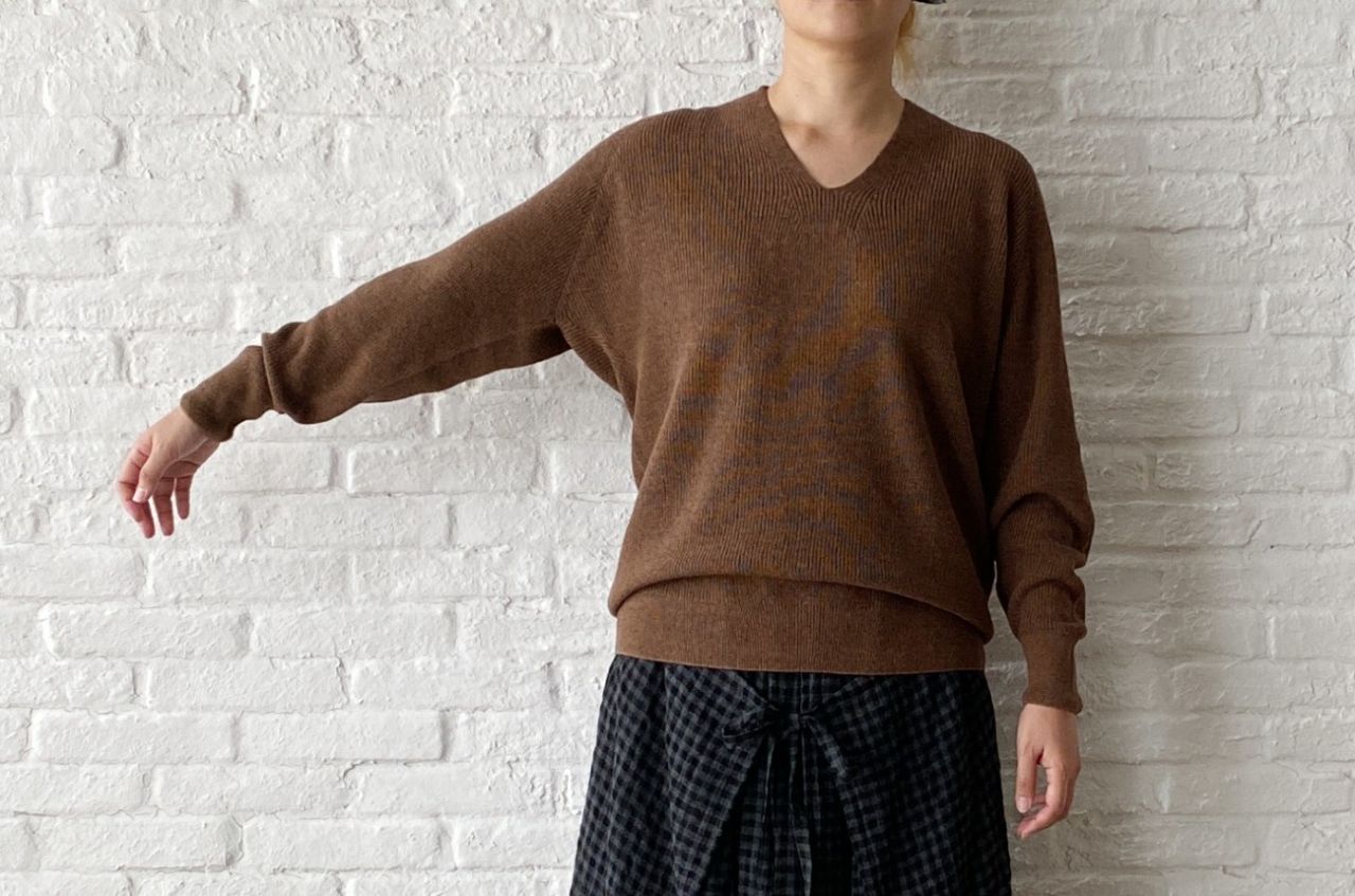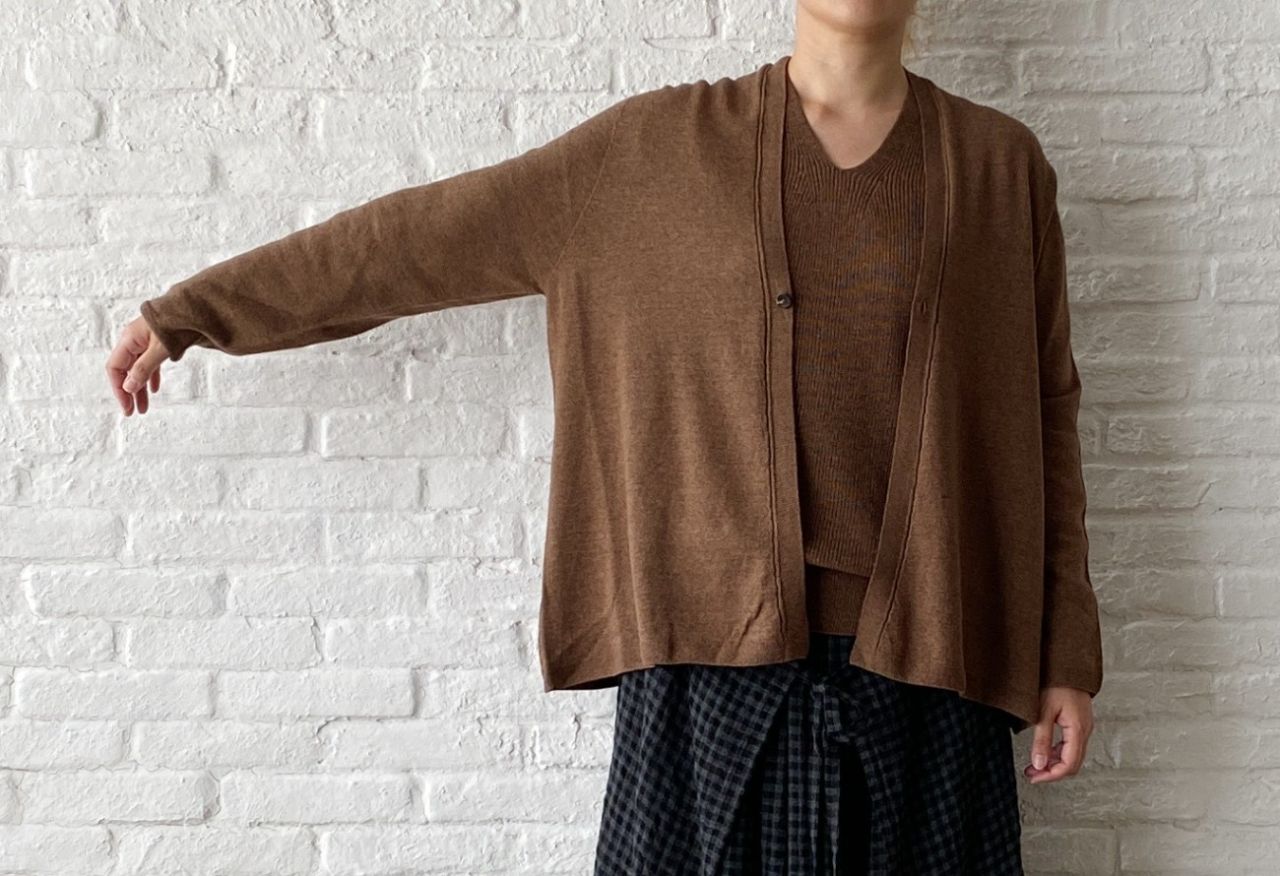 体につかず離れずのサイズ感なので、秋冬にかけてマストなジャケットやカーディガンのインに◎なアイテムです。