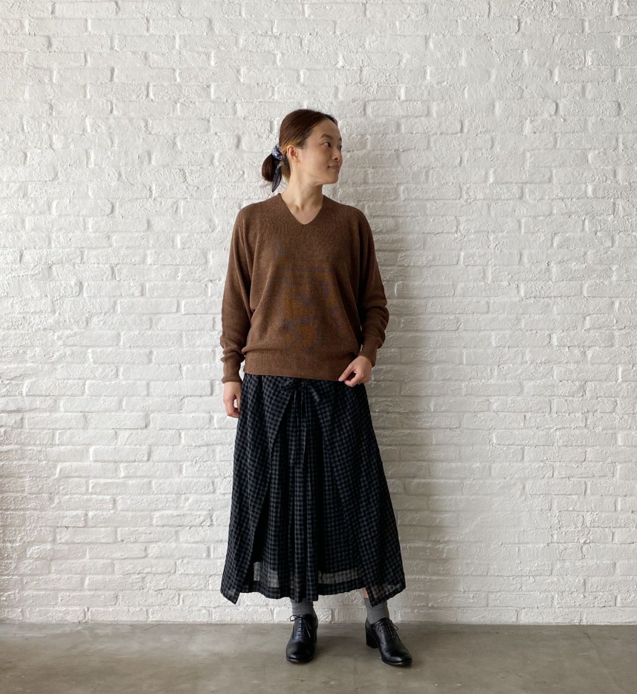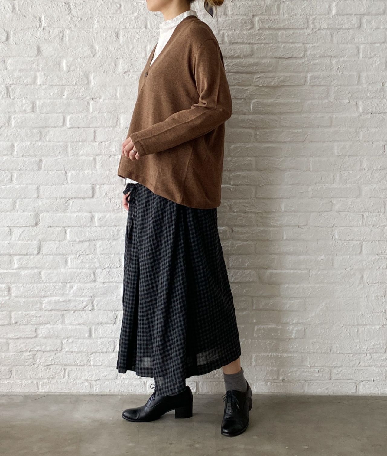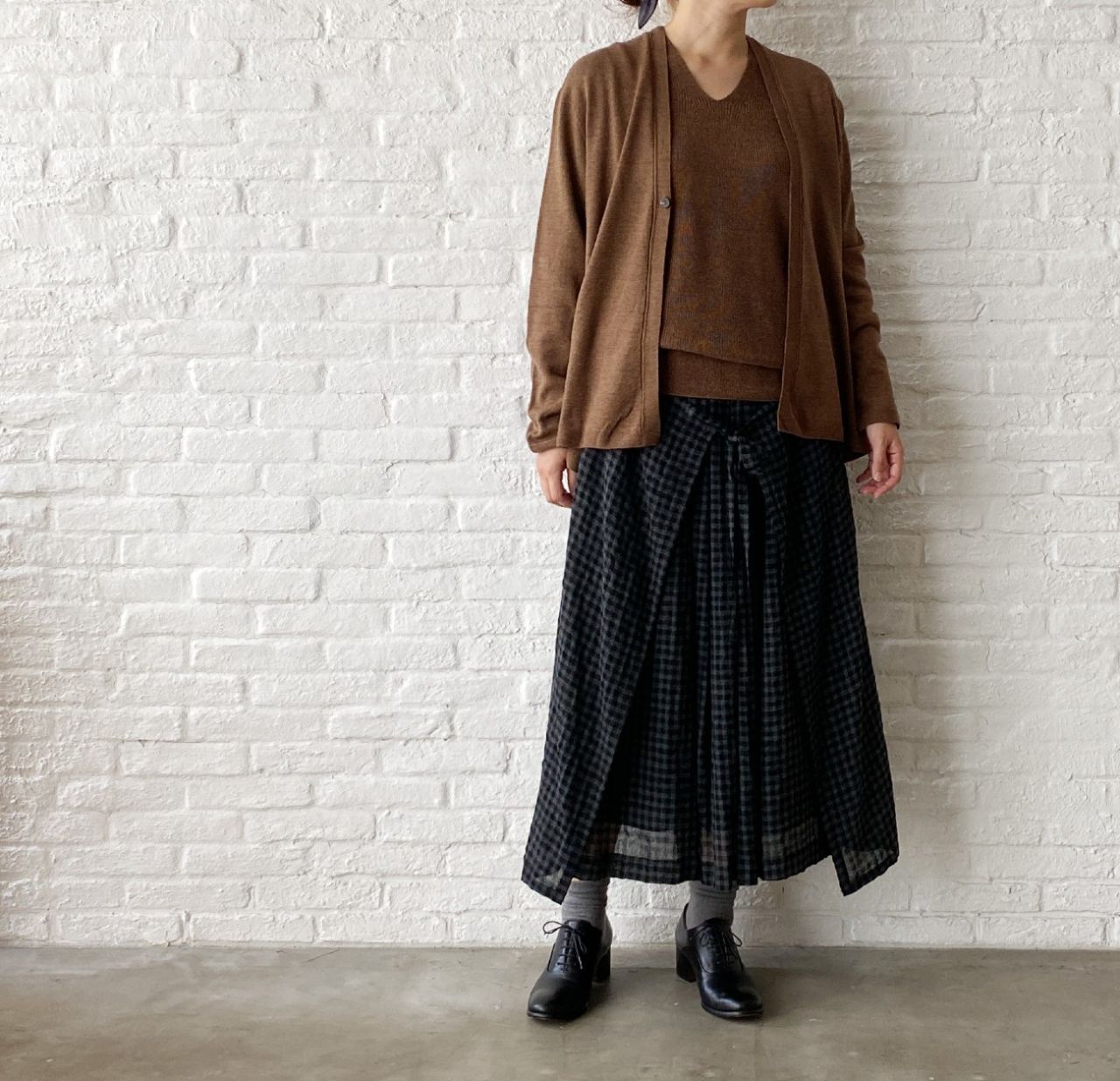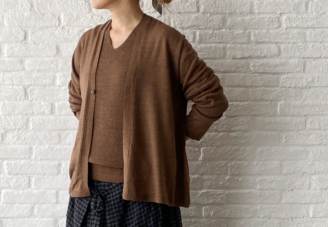 アンサンブルで着ると、その編地の違いがポイントになります。