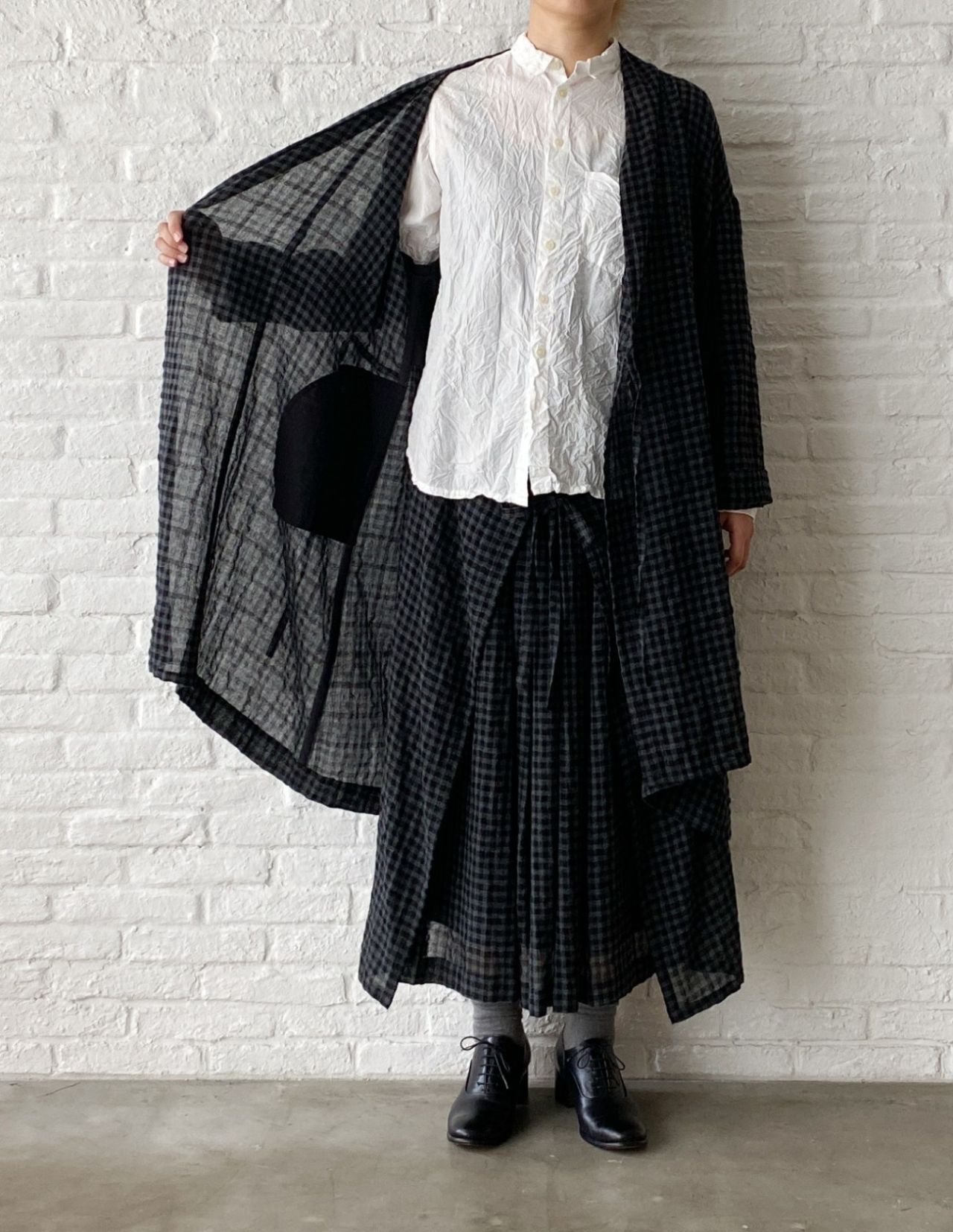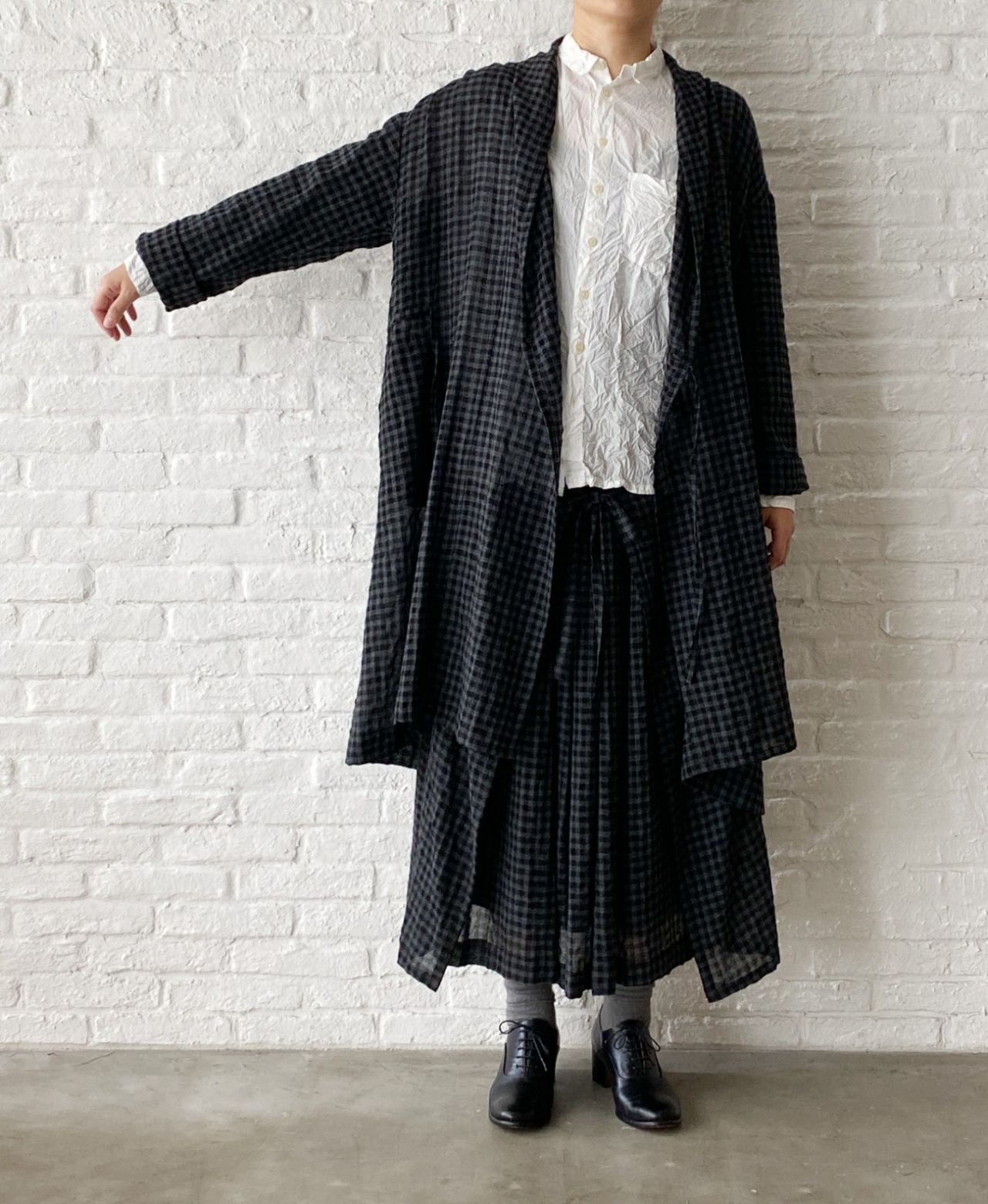 薄手のウール混素材を使用した、ギンガムチェック柄。