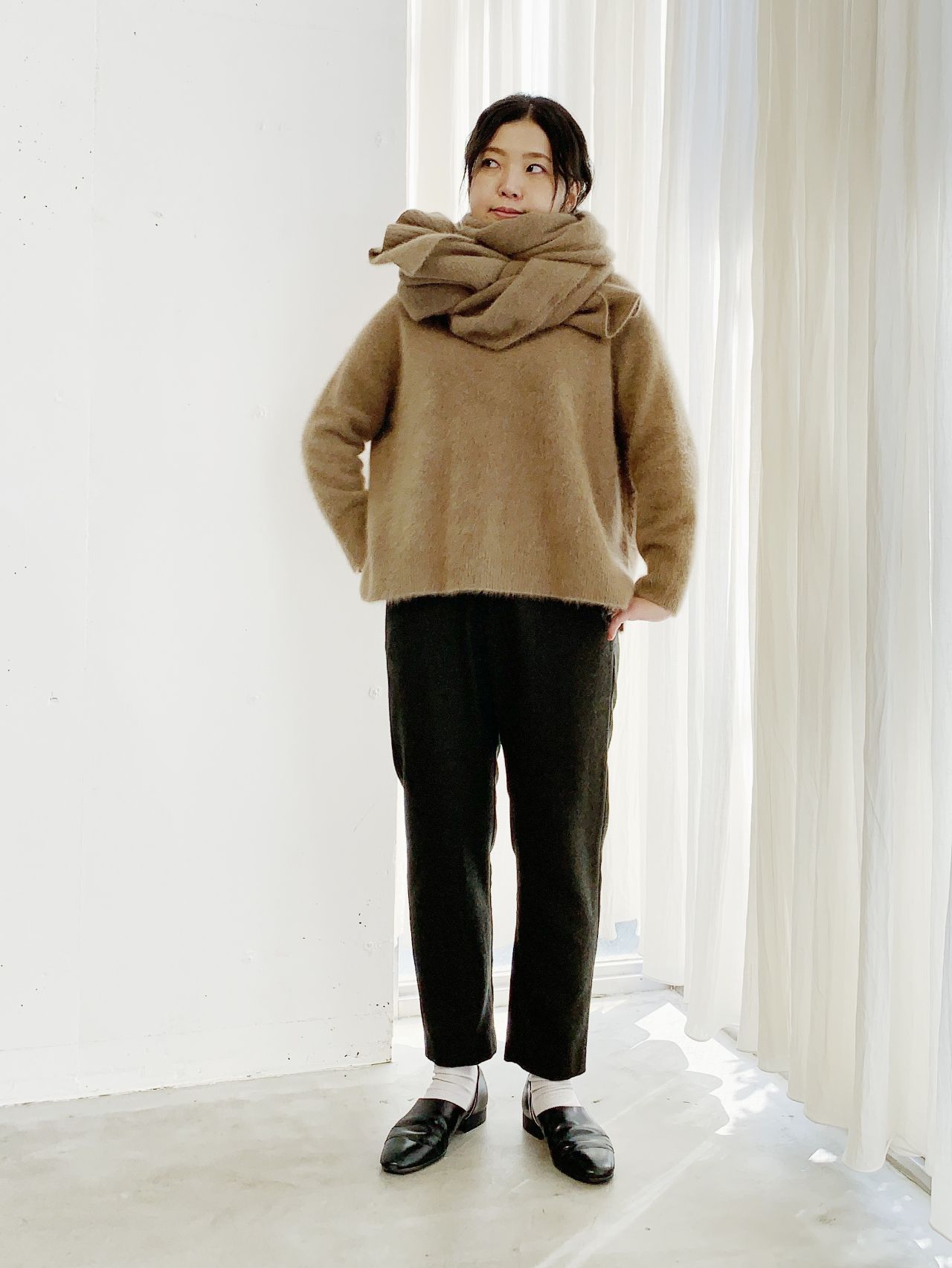 本日は先日ご紹介したラクーンカーディガンと同じシリーズのオフネックプルオーバーを使用したコーデをご紹介します!