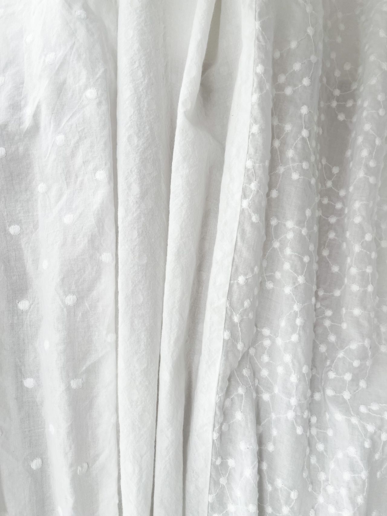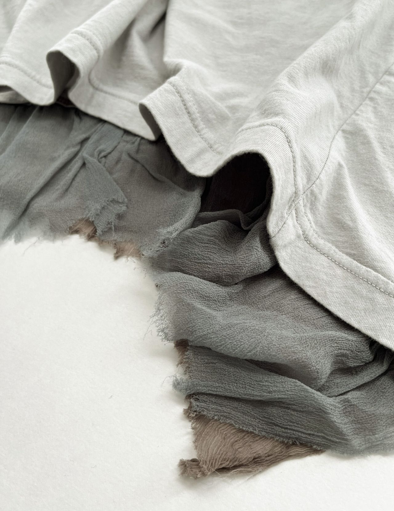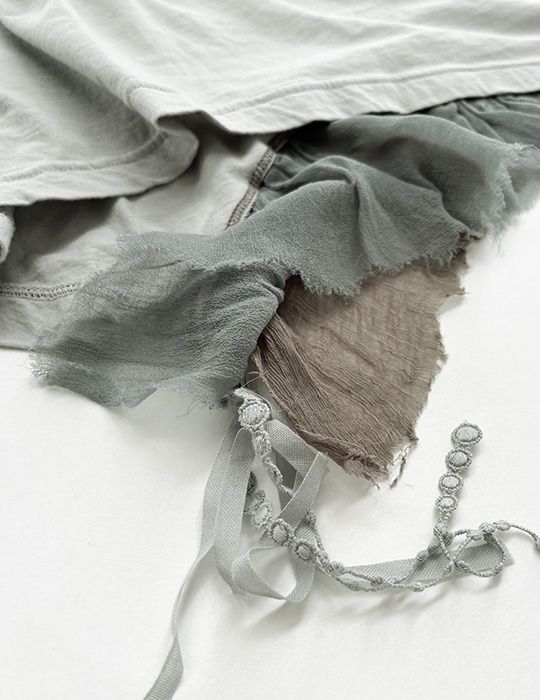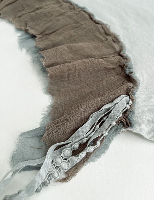淡いグリーンをベースに、裾にはグリーンとブラウンのシフォンやレースを付けました。