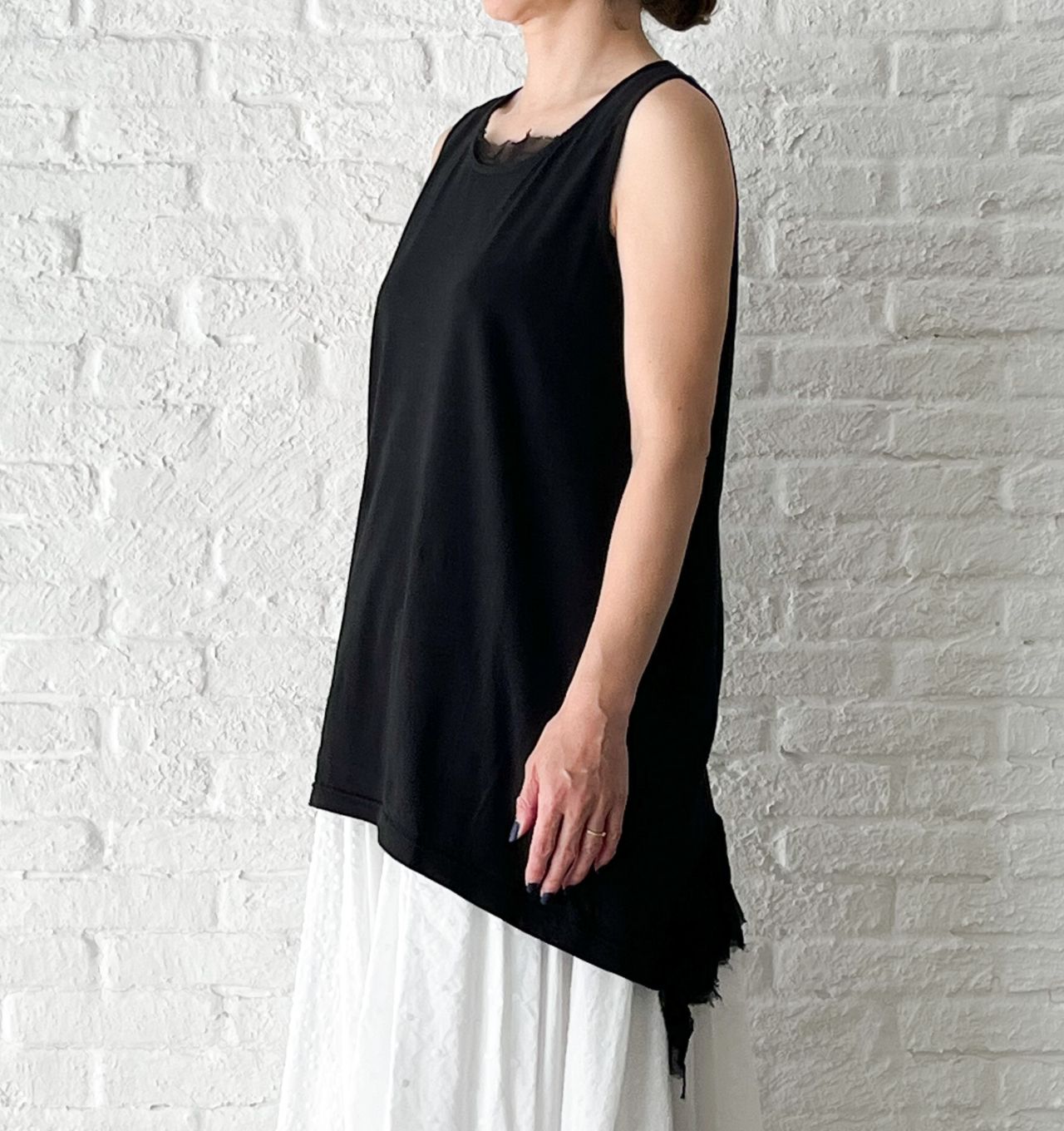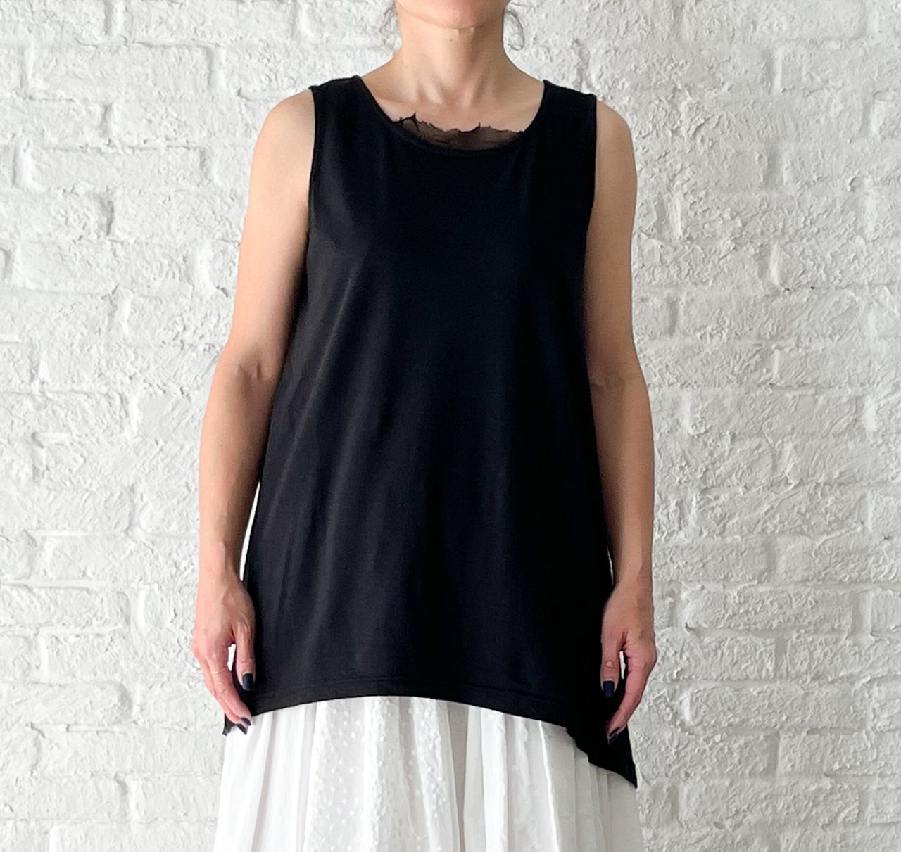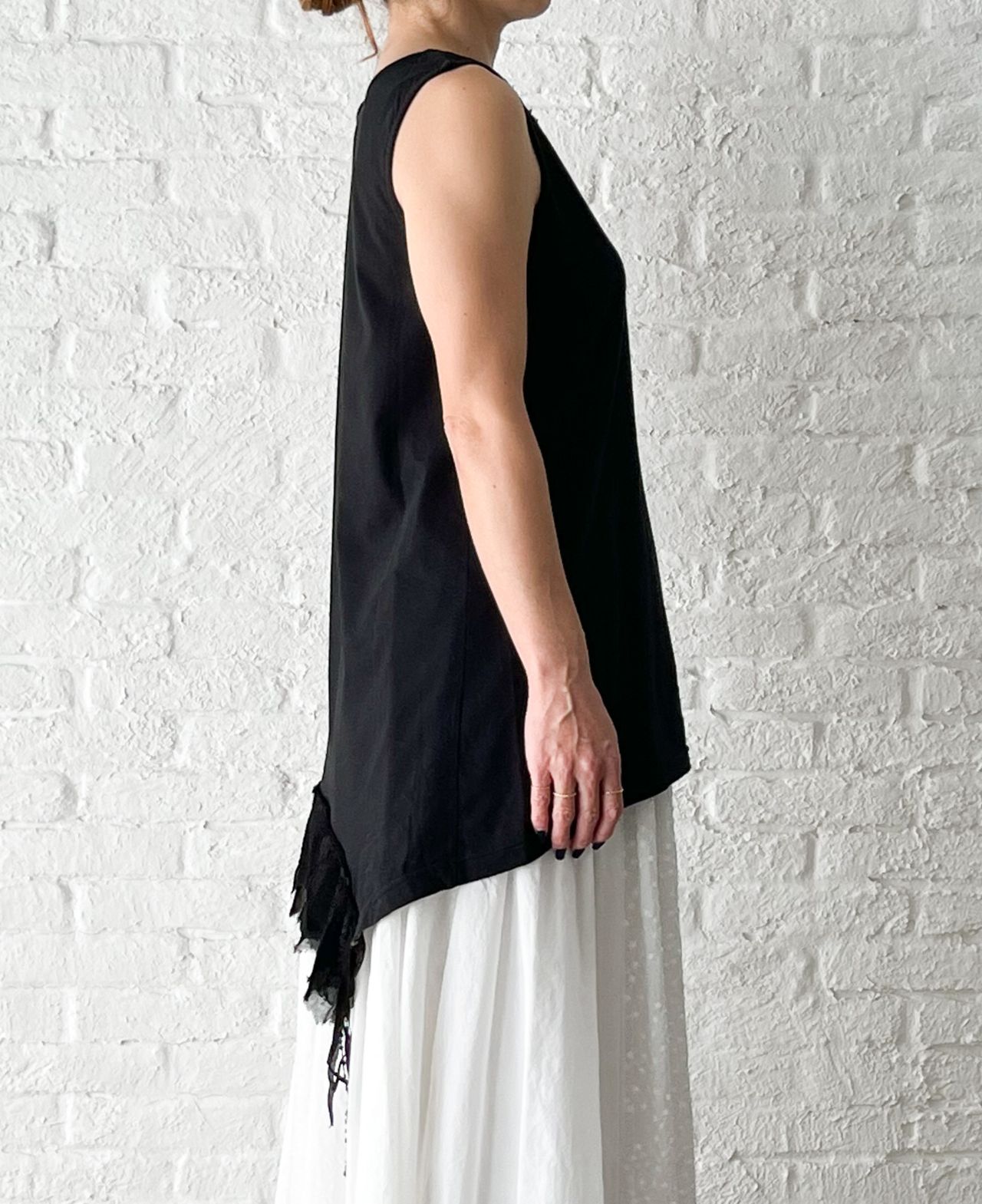 定番で作っていた 裾レースタンク より長めの着丈です。