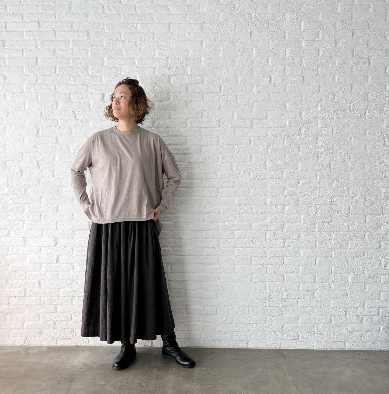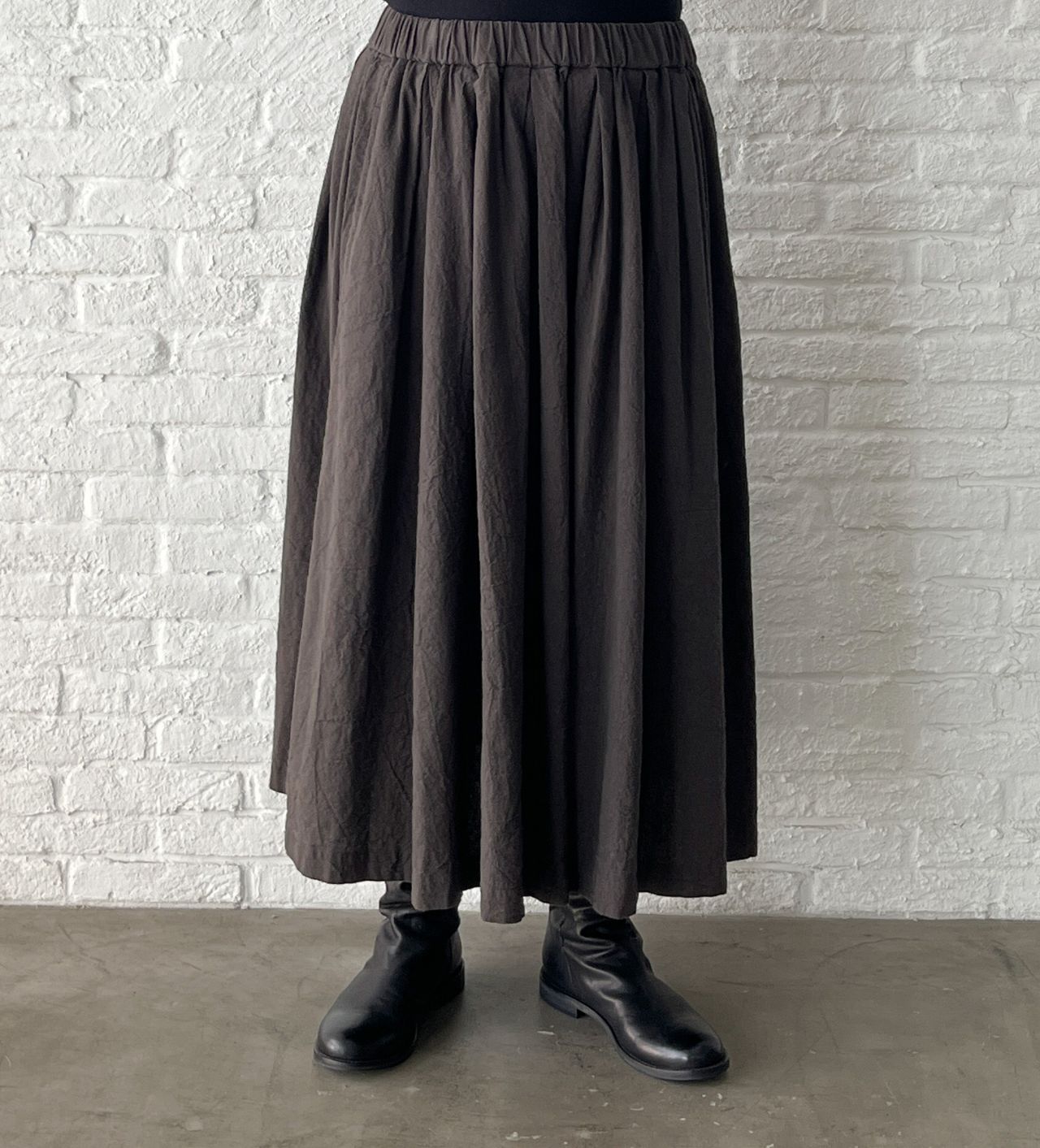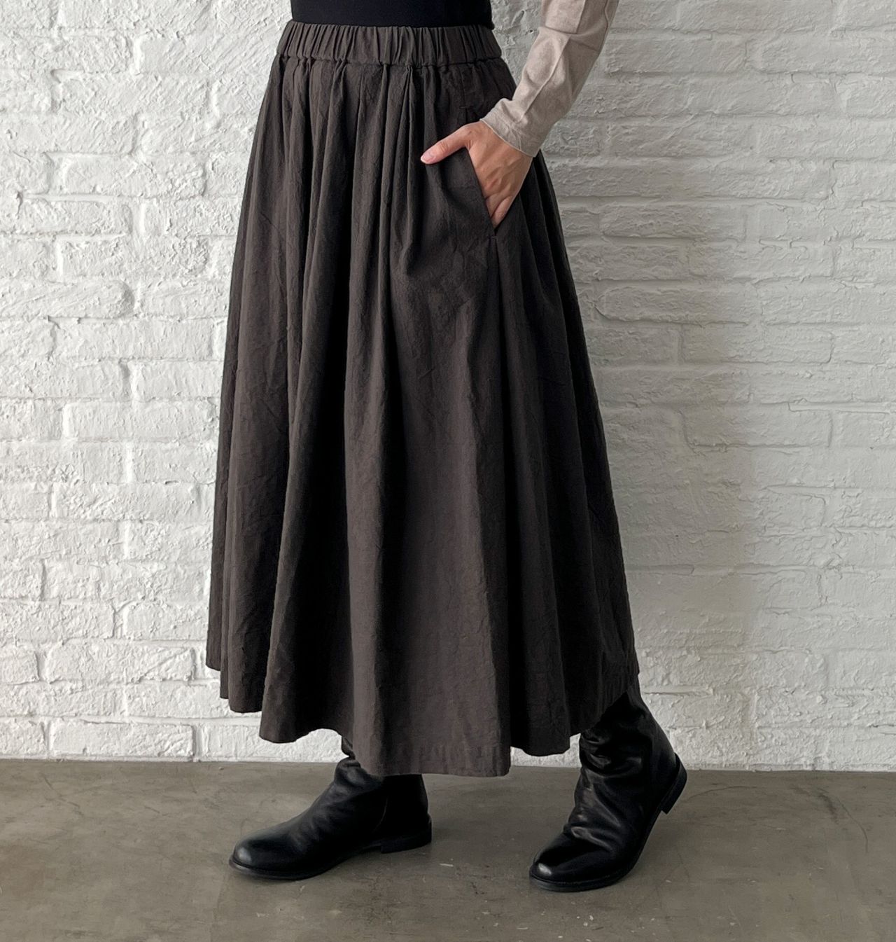 季節を問わず履いていただける、綿麻素材のロングスカート。