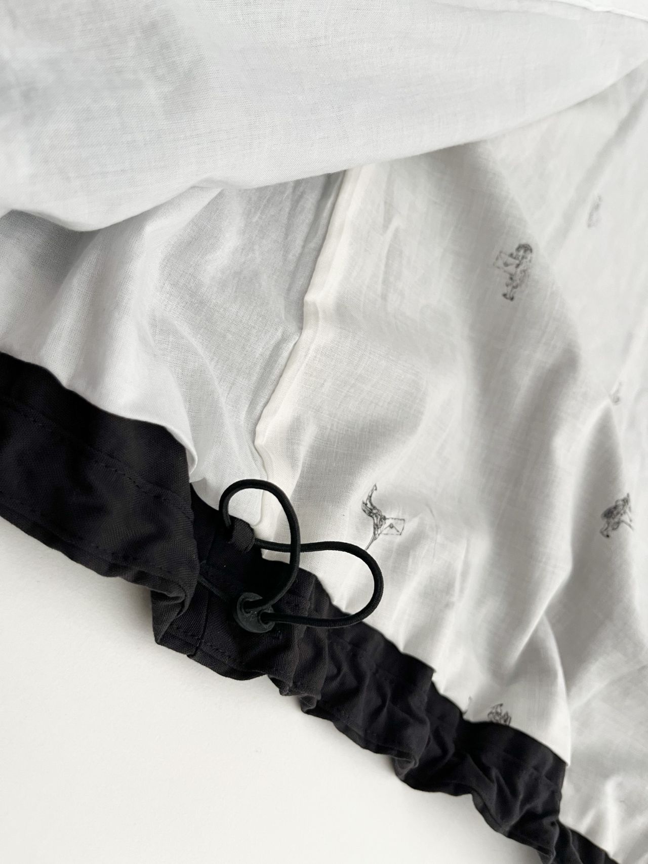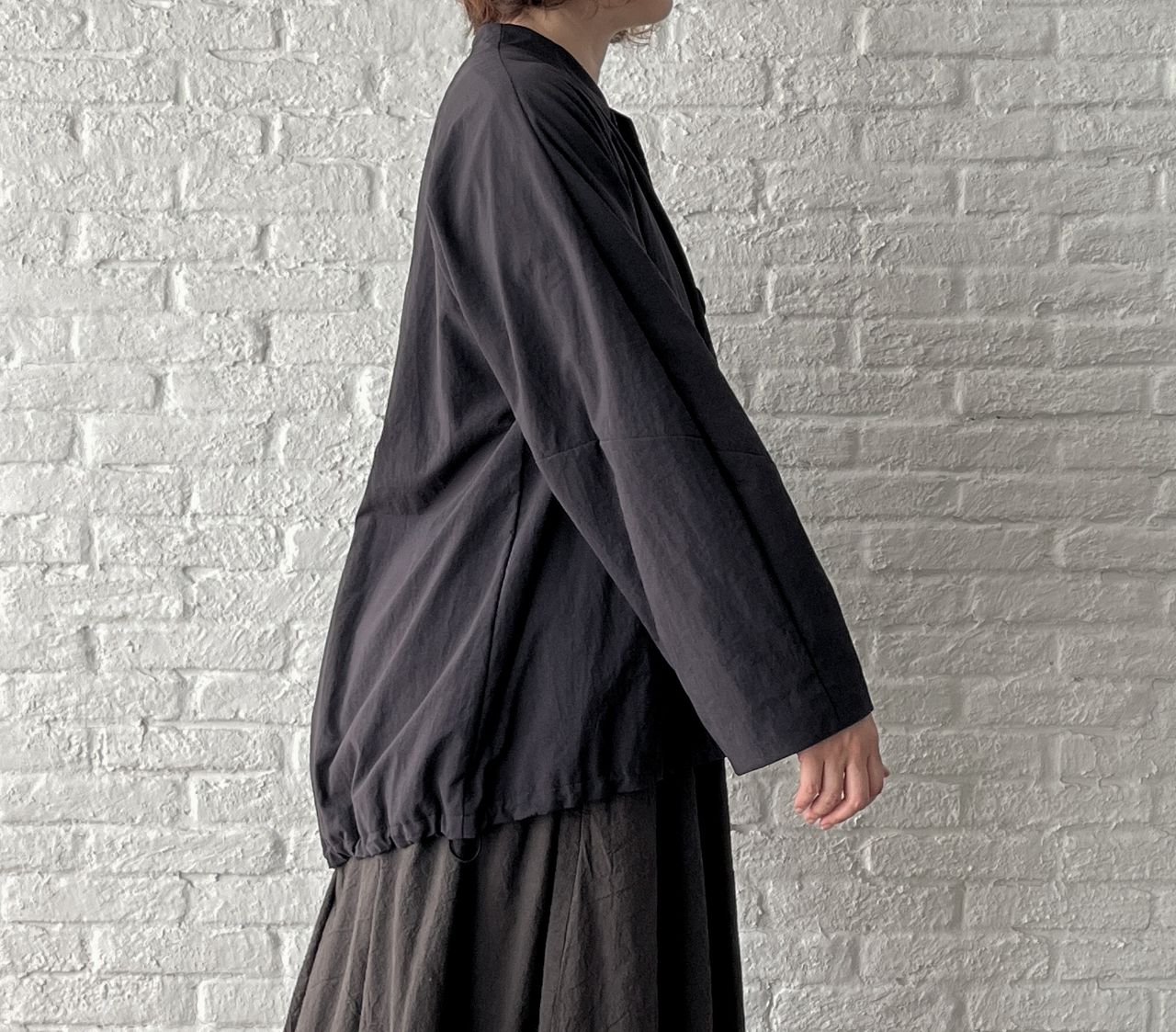 裾の紐をキュッとすればギャザーが寄るデザインで、カジュアル感が出ます。