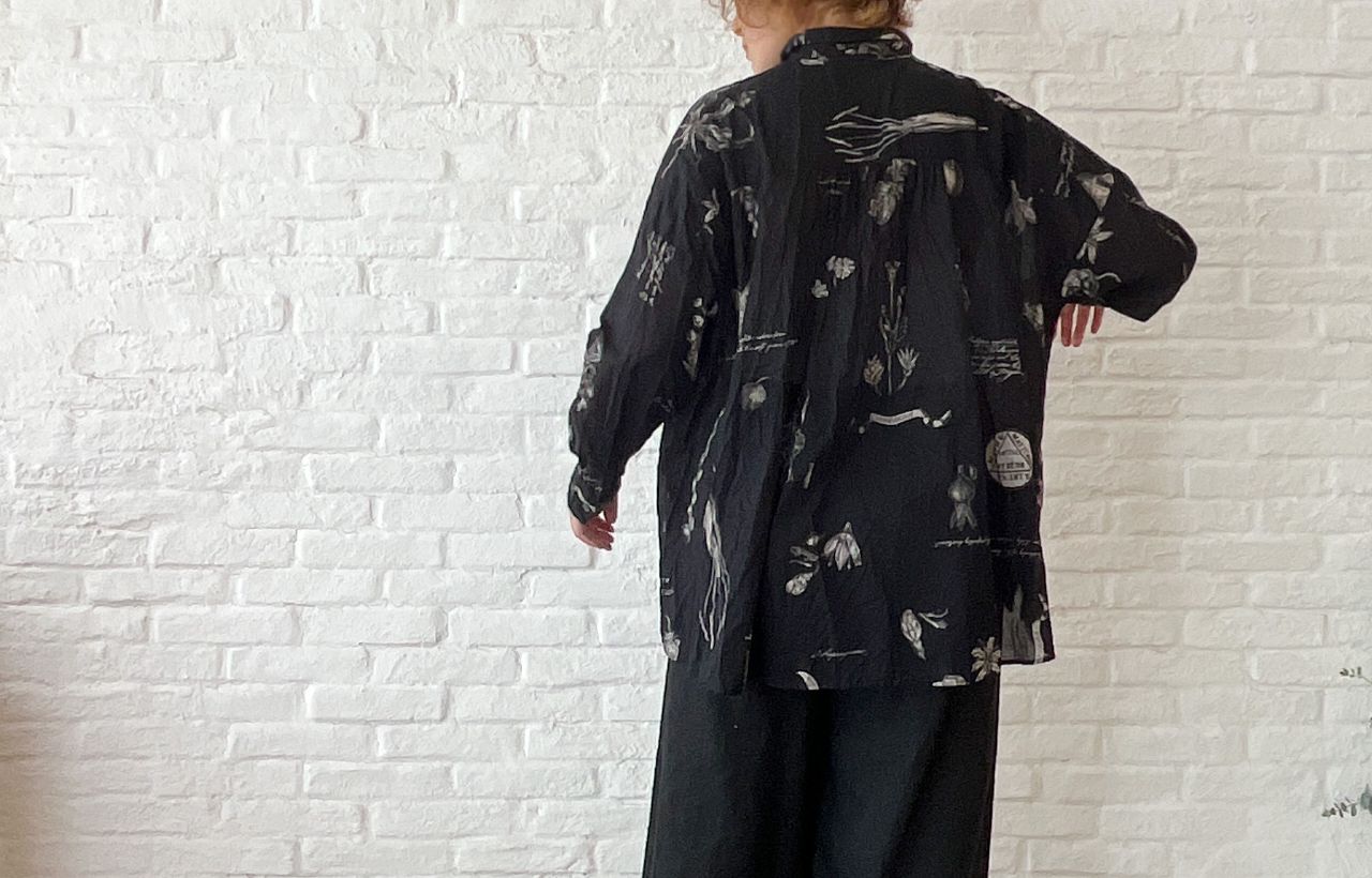 肌寒い今の時期でしたら、中にブラウスを重ねて着ていただいても◎。