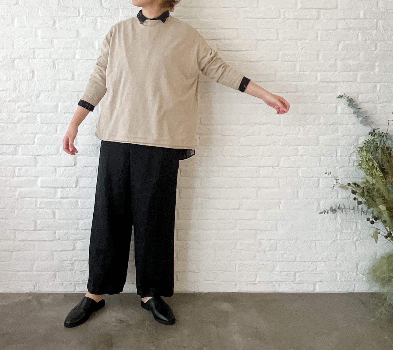 col.64 ベージュ・36size(着用)/52 トップグレー/90 ブラック/size展開・34 ¥26,400