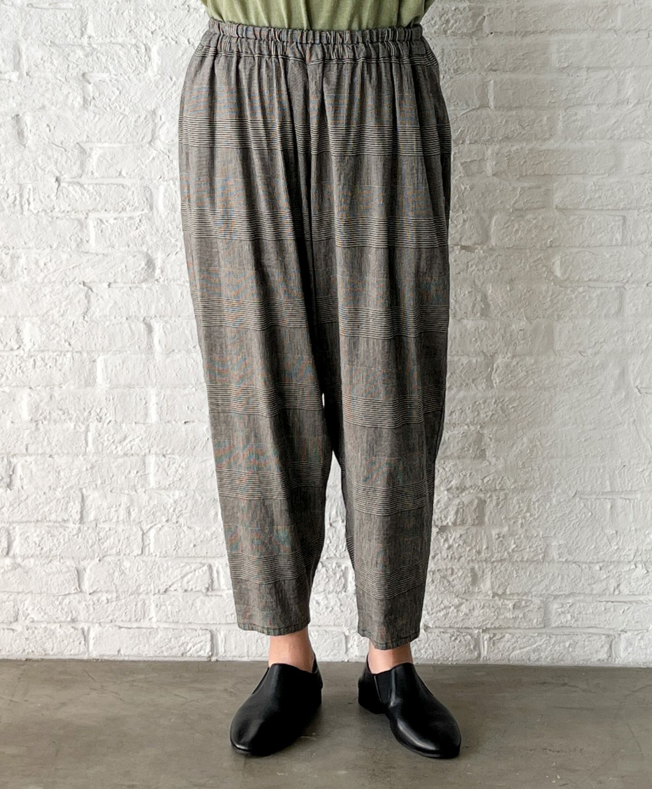 no.8304 先染めリネンレーヨンストレッチ テーパードパンツ
