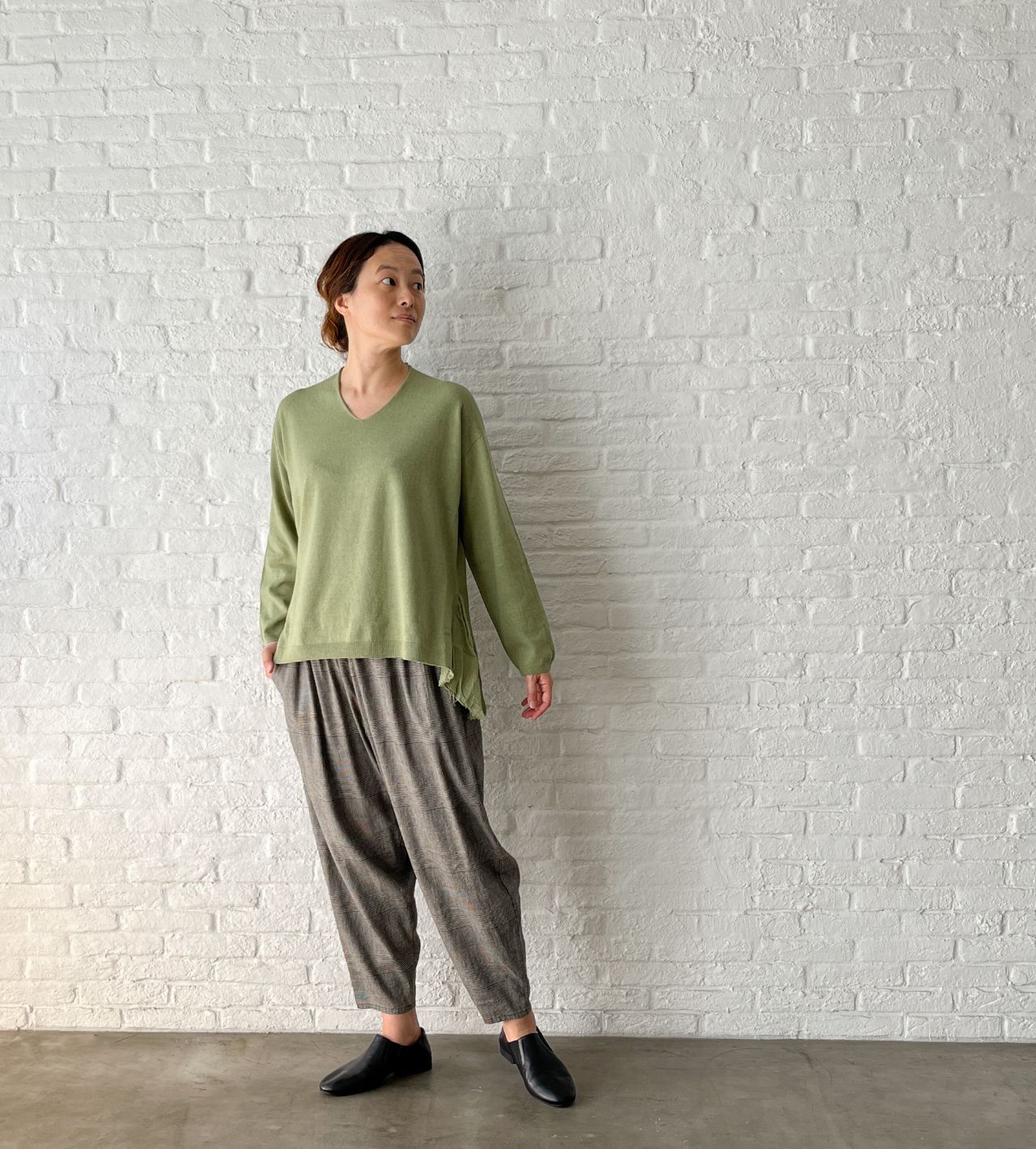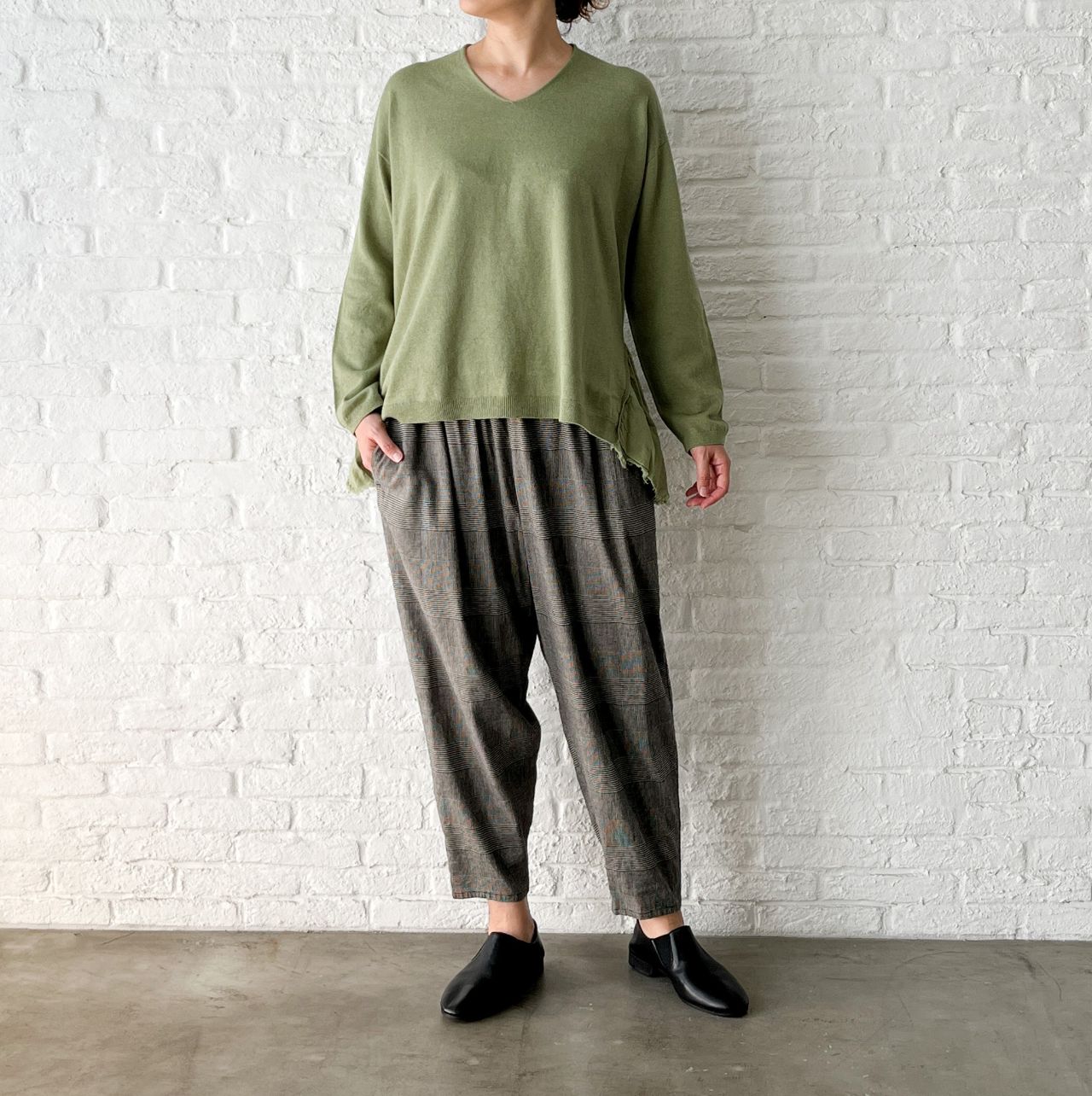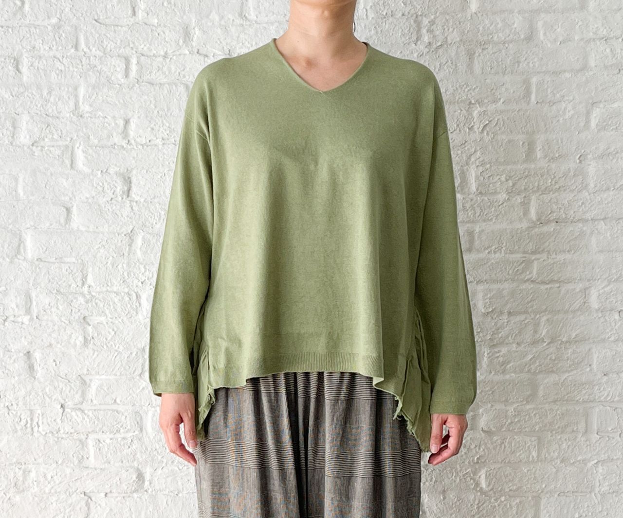本日再入荷した、ヨモギで染めたニットをご紹介。