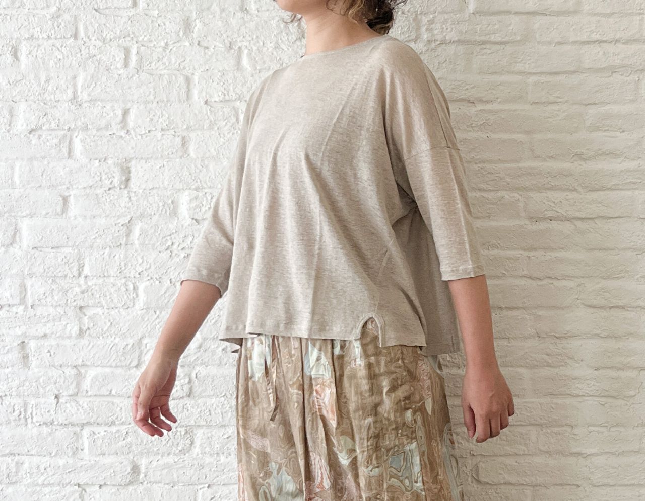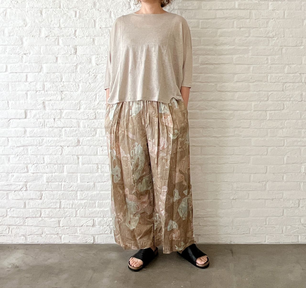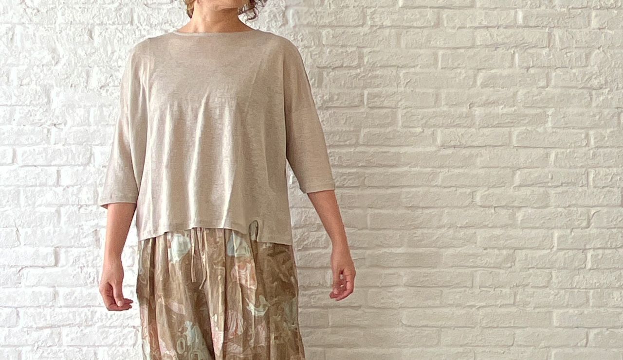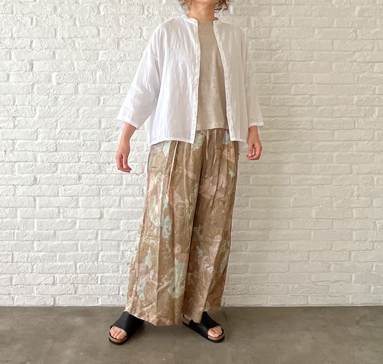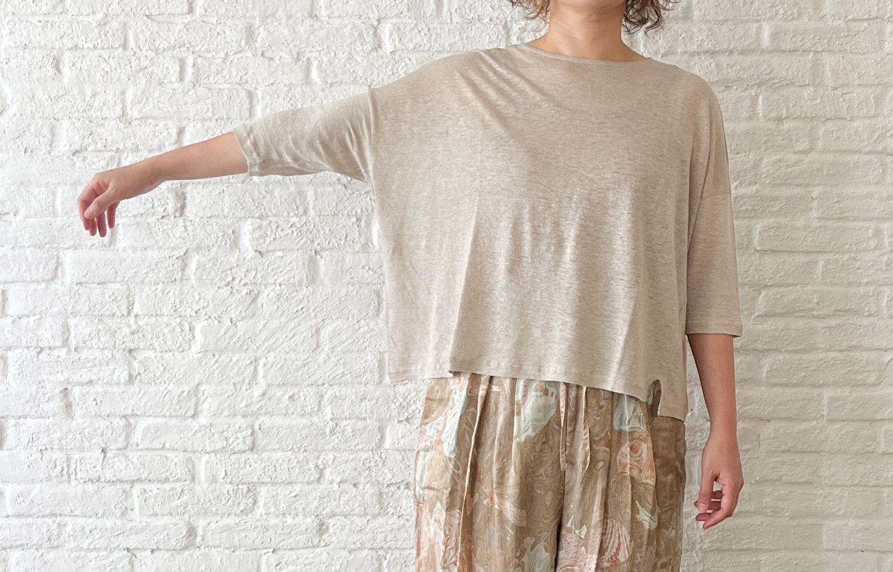 麻のナチュラルな雰囲気が残っている素材感ですが、ゴワつきない肌触りです。