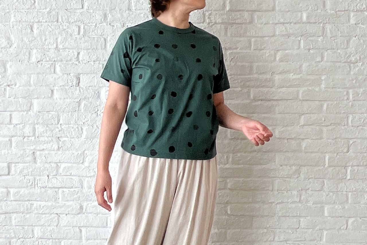 手描きのような強弱あるドット柄がポイント。
