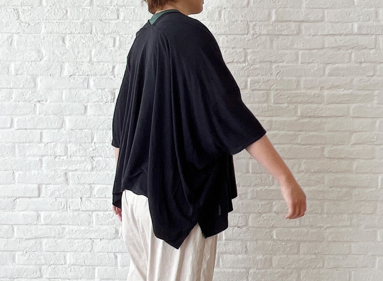 ジャストで着ていただけるサイズ感なので、カーディガンのインなどでも1枚でも◎。