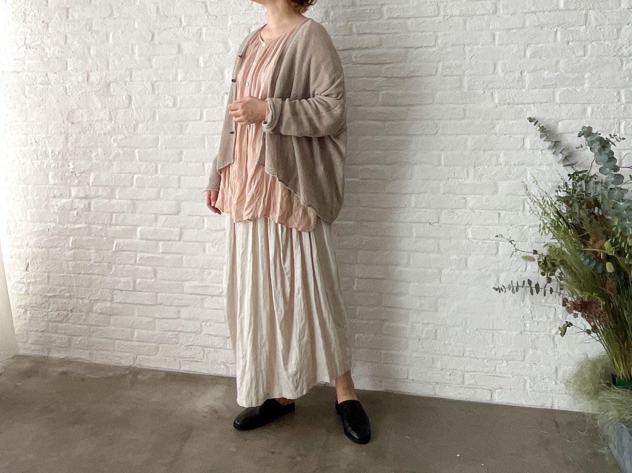col.65 ナチュラル(着用)/67 グレージュ/90 ブラック ¥37,400