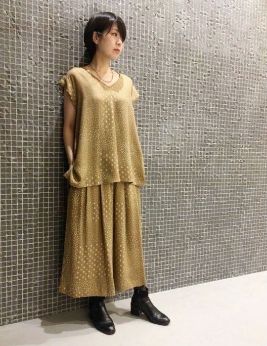 【着まわしコーディネート】 リヨセルツイルランダムドットプリント ブラウス