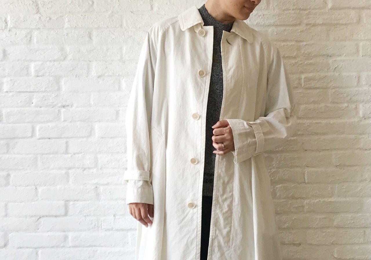 すっきりしたテーパードシルエットなので、ロングワンピースの重ね着でのぞかせても。