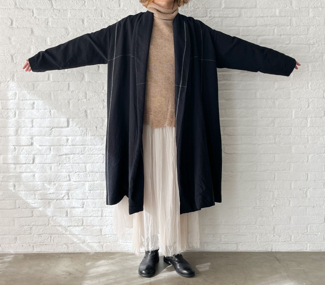 総裏仕様で、中に着込めるほどのゆとりがあるコートです。