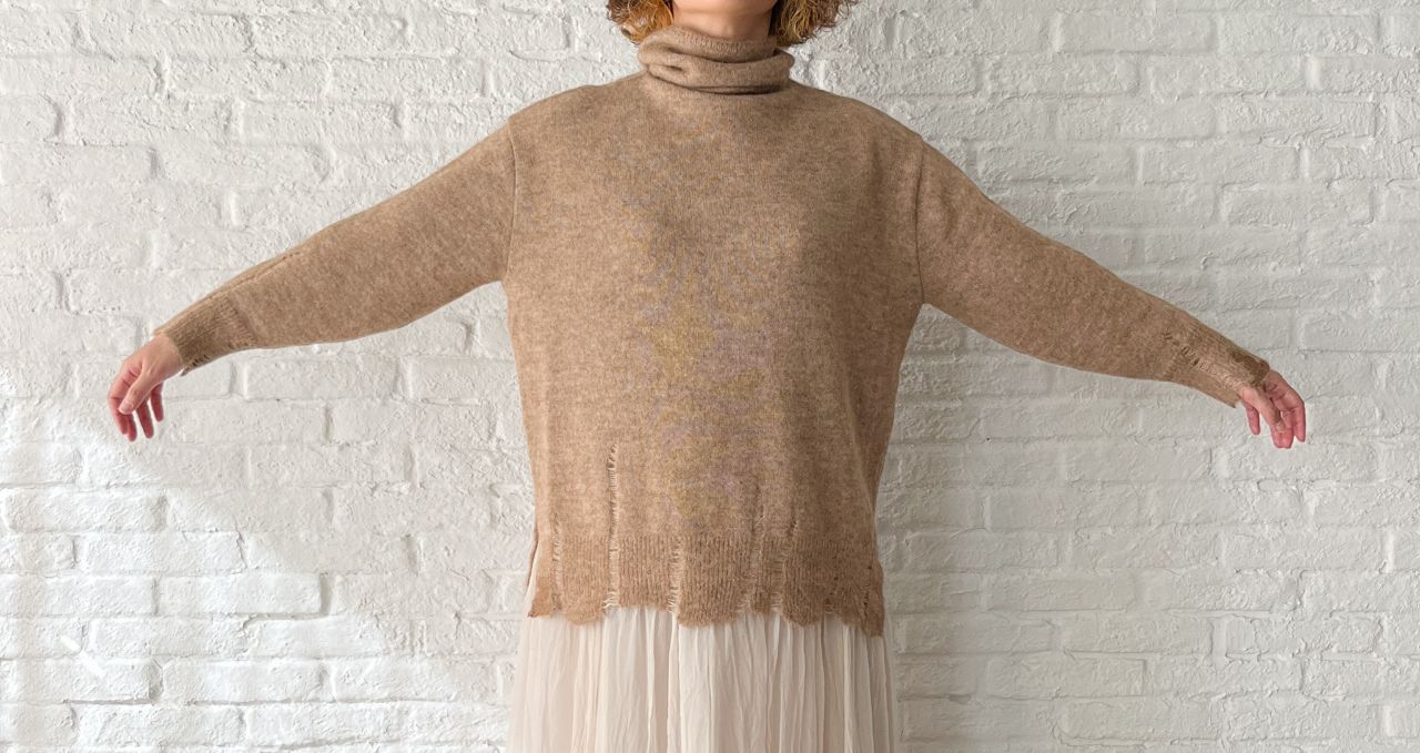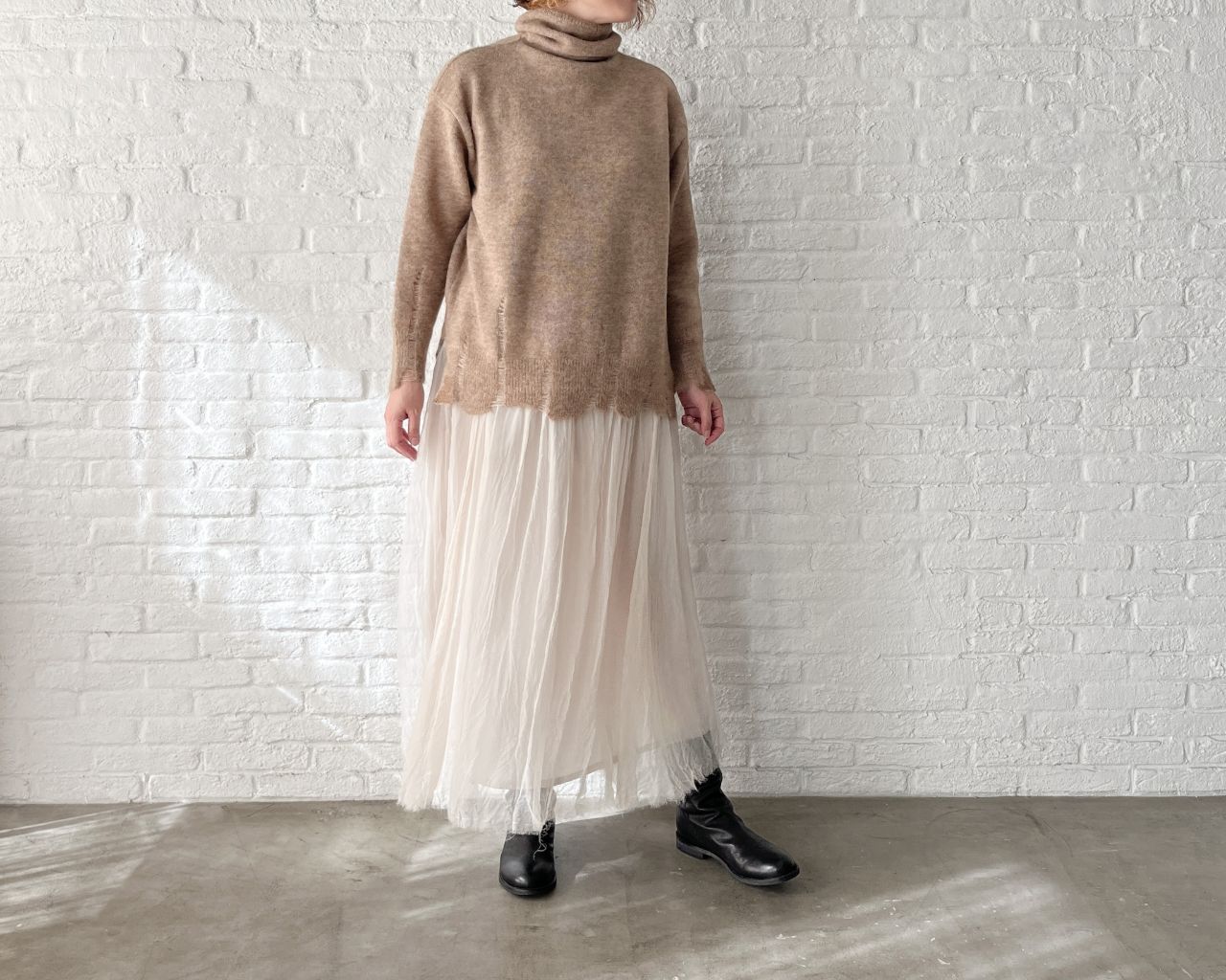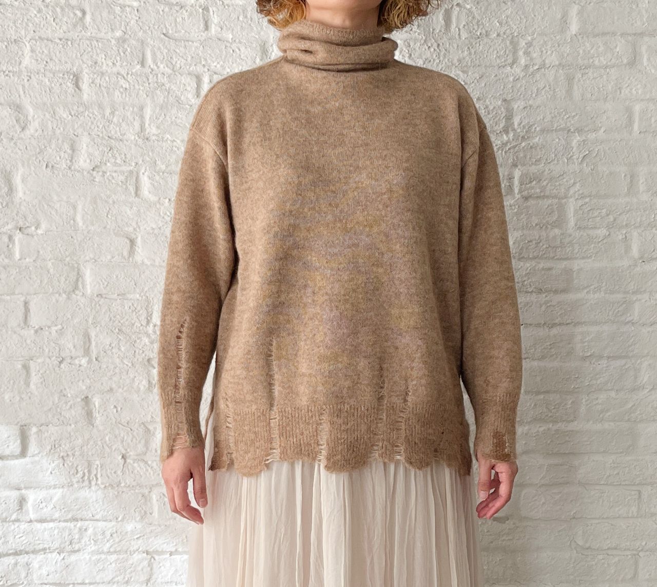 no.2427【10%OFF】ベビーアルパカクラッシュ編み出し タートルネック