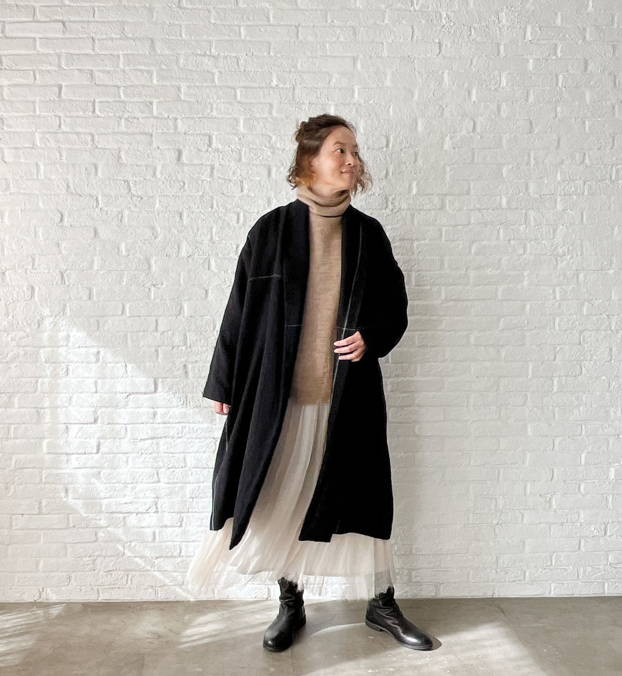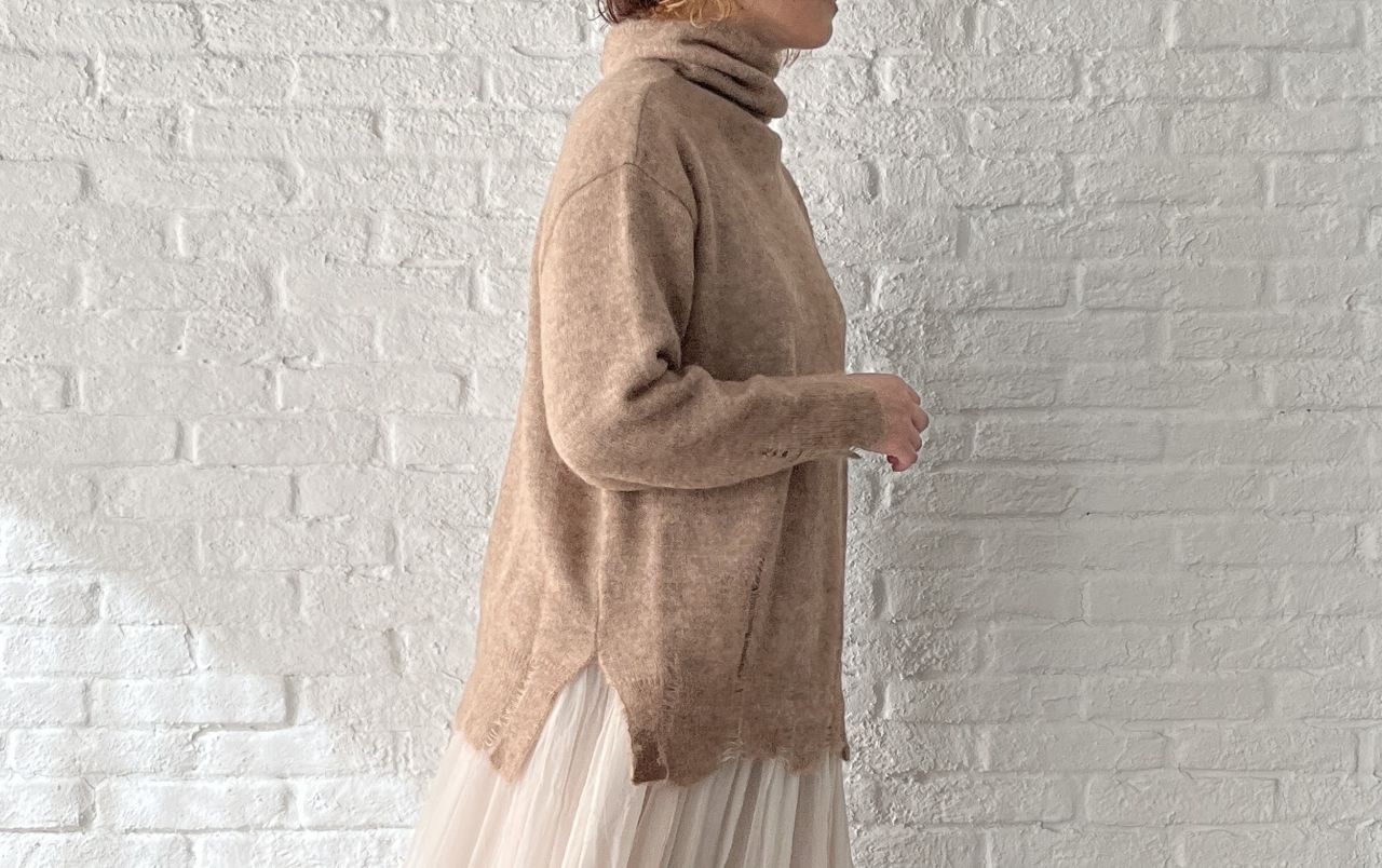 首元もゆるりとしていて、リラックス感あるタートルです。