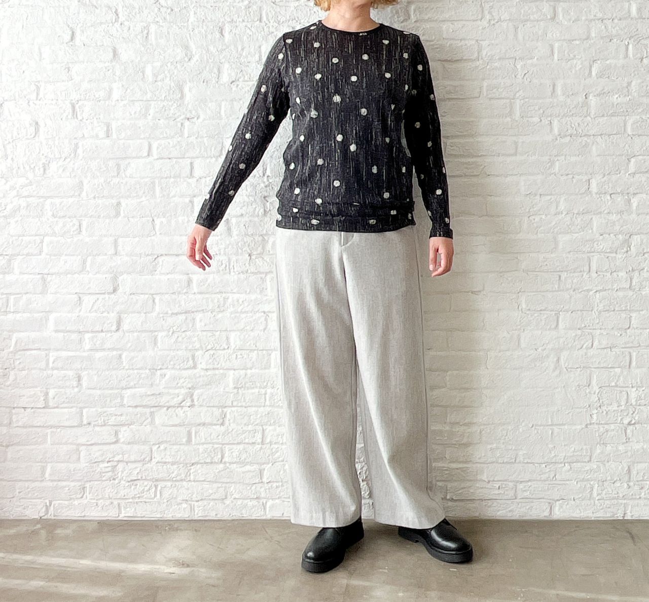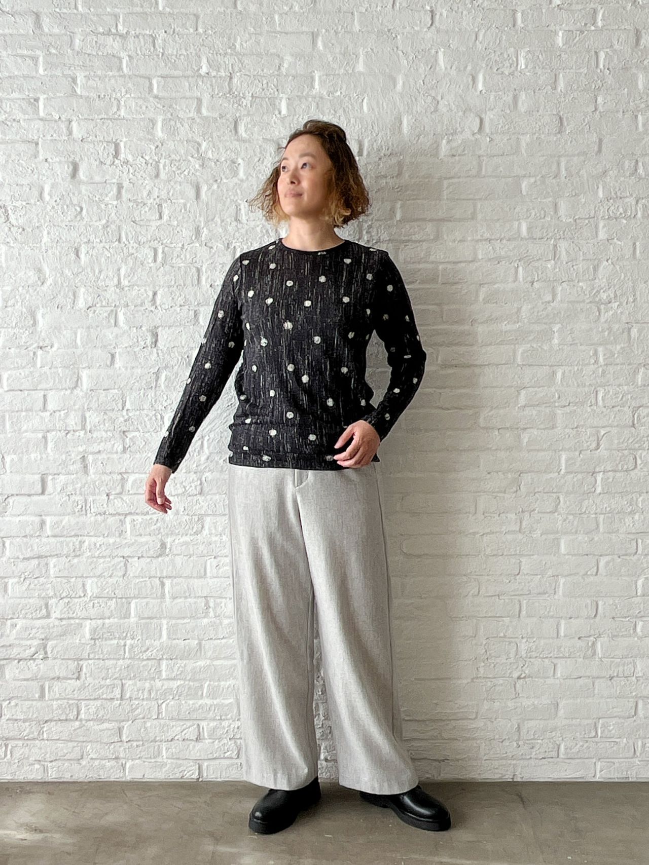 col.50 グレー・36size(着用)/53 チャコール/90 ブラック/size展開・34 ¥35,200