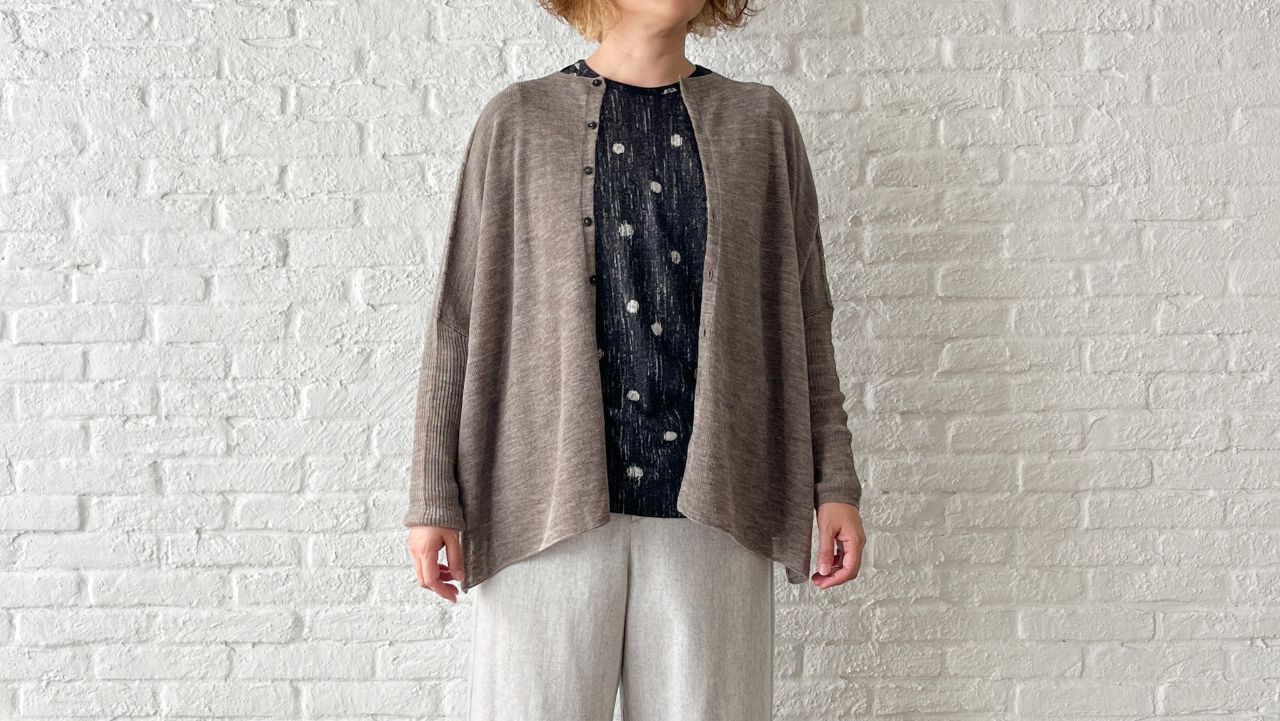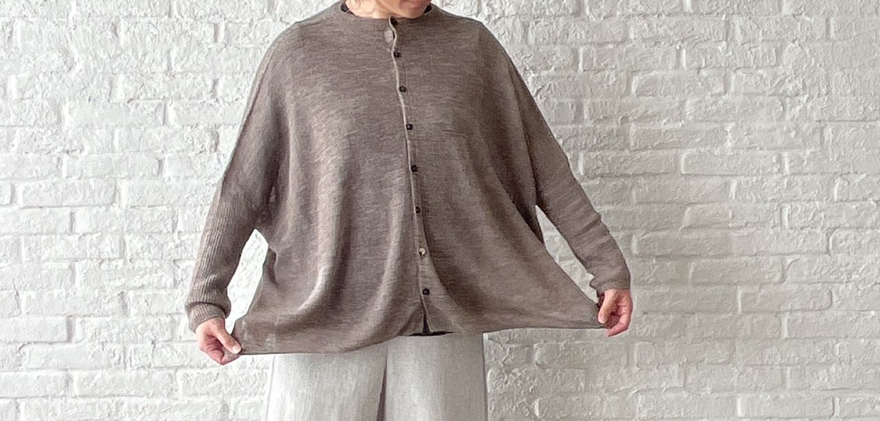 ガーゼのように薄手のウール素材なので、毛羽立ちがほとんどなくチクチクしないのが特徴の素材です。