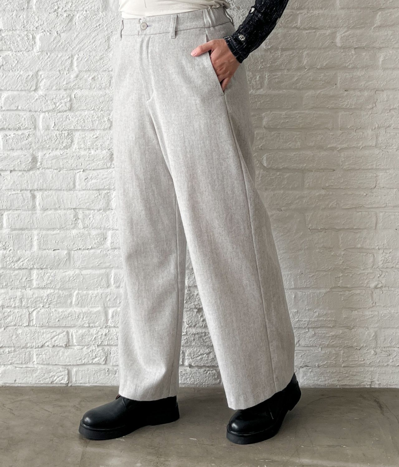 no.8485【W POINT】ECO WOOL フラノ ワイドパンツ