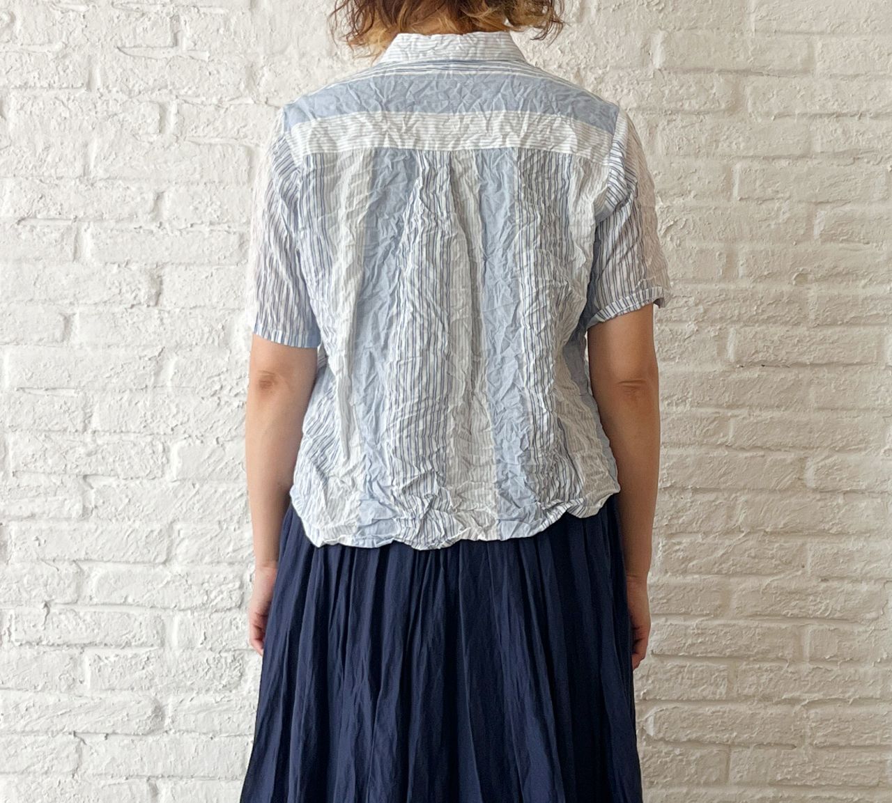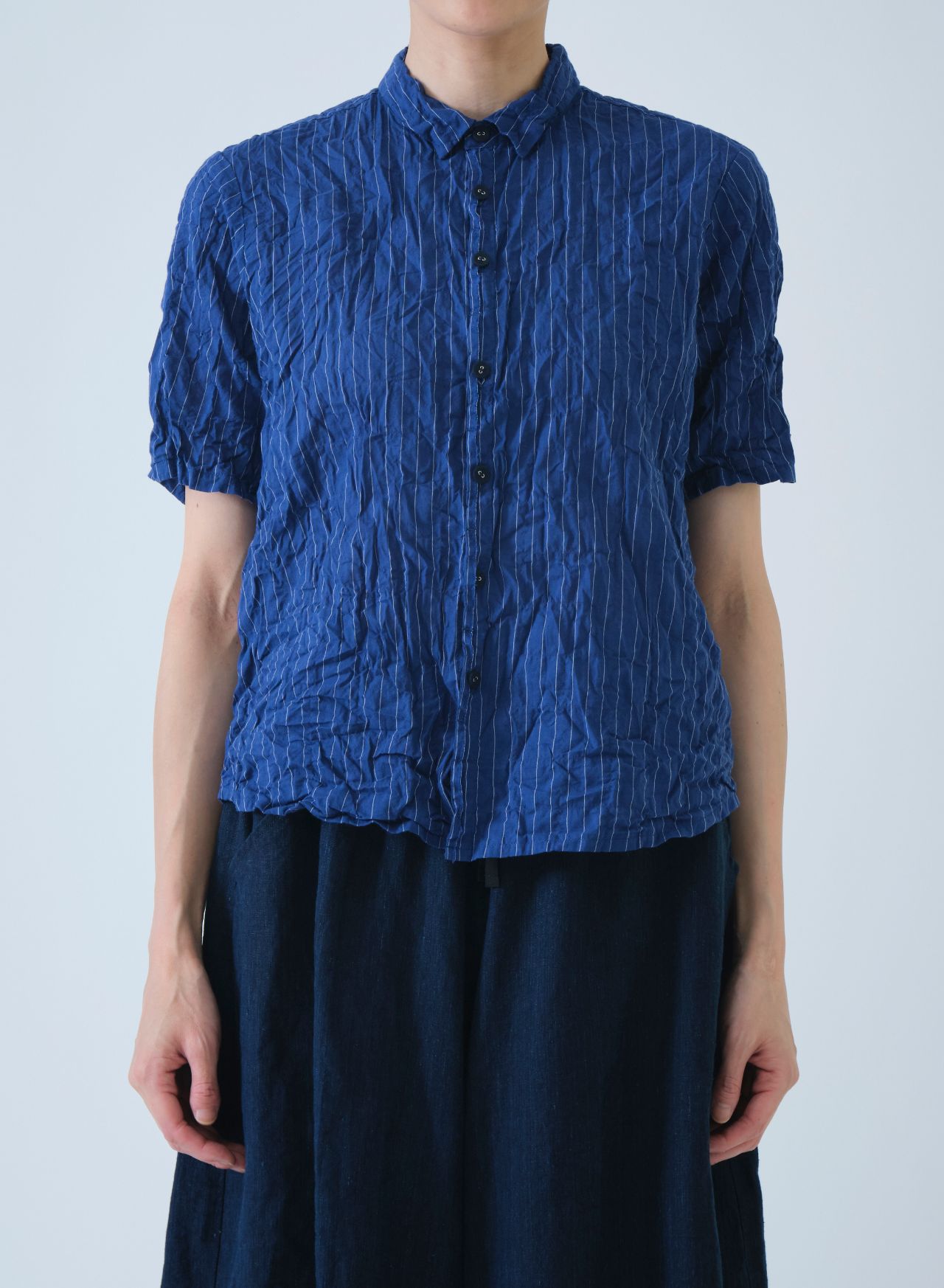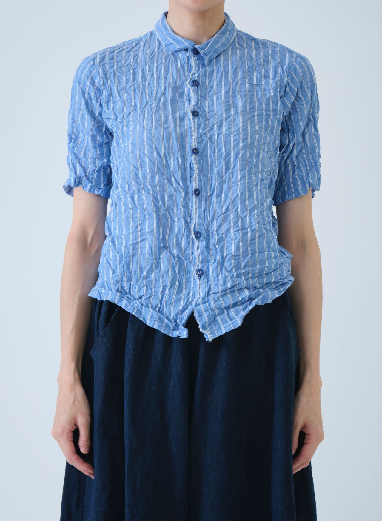 no.6795 【W POINT】ブルーシャーリングストライプ ブラウス