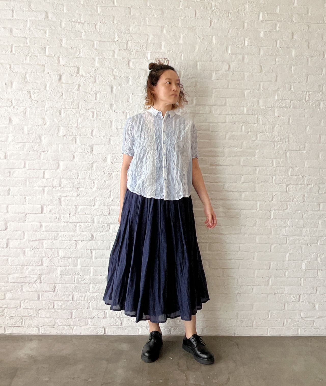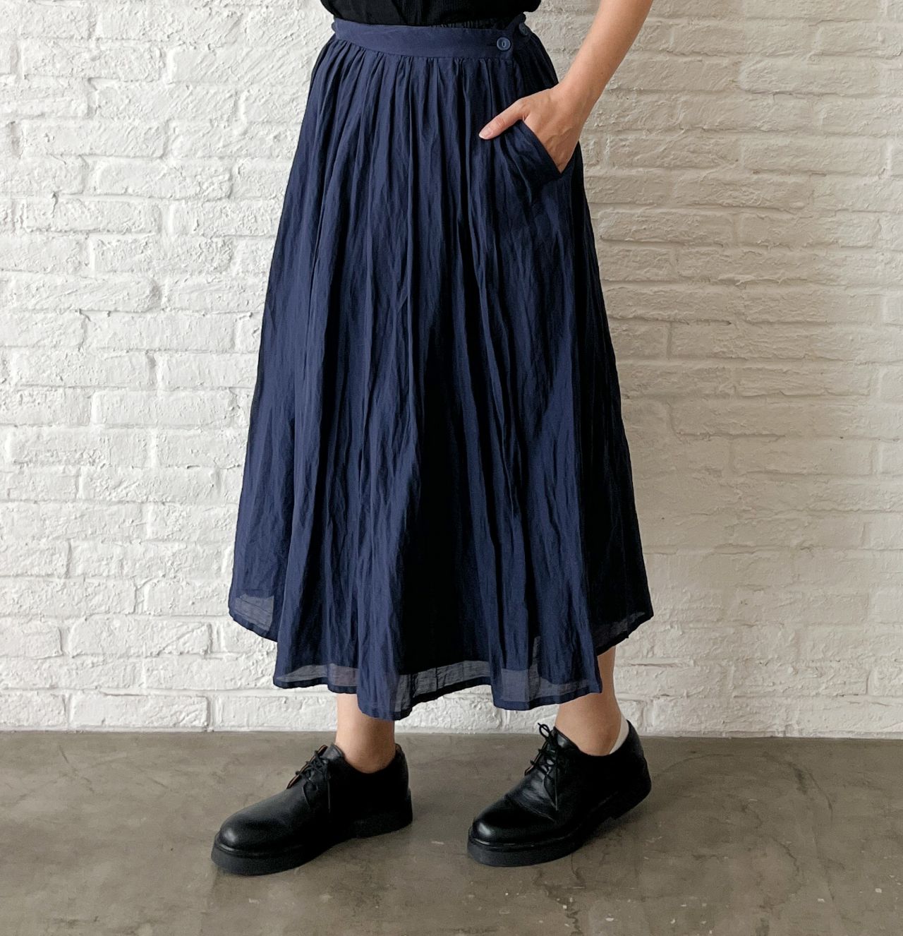 no.7457【W POINT】コットンシルクローン タックギャザースカート