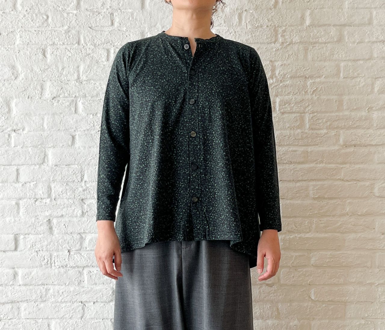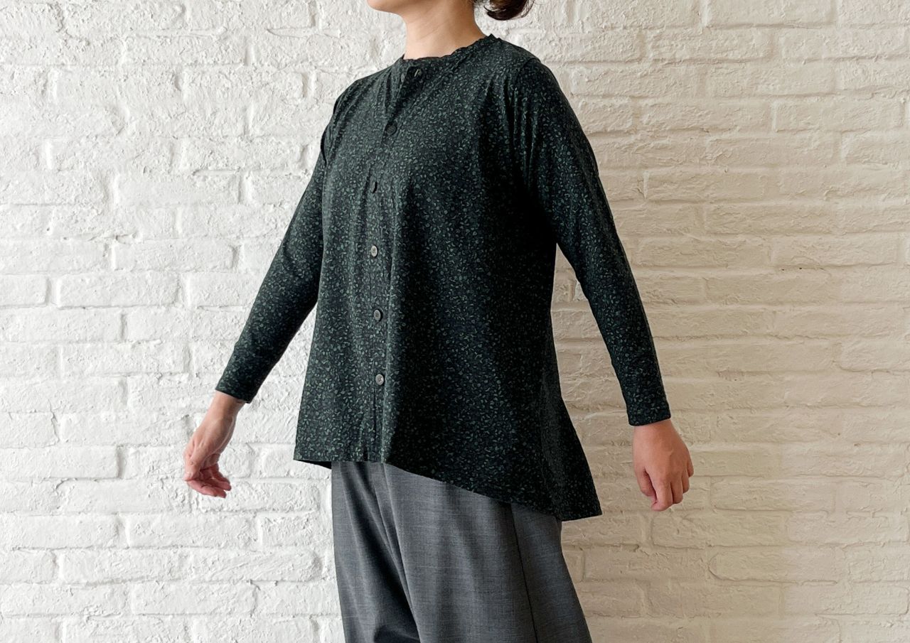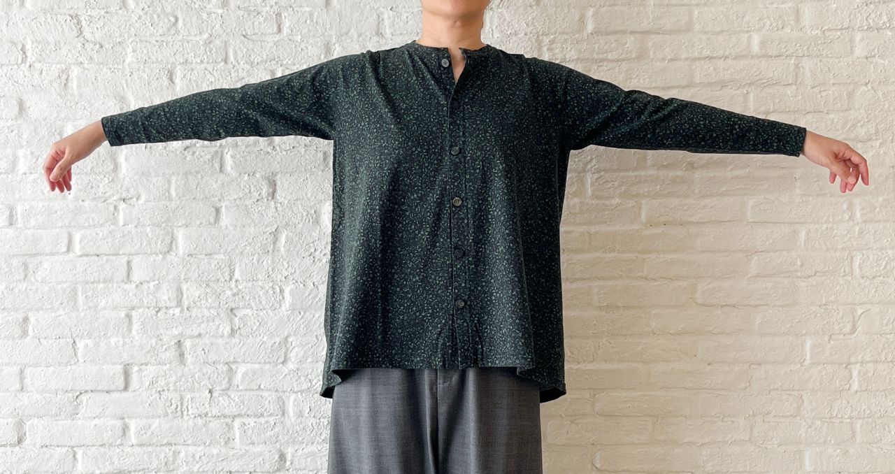 前ボタンをしめて1枚着としても、ボタンを開けて羽織としても着ていただけます。
