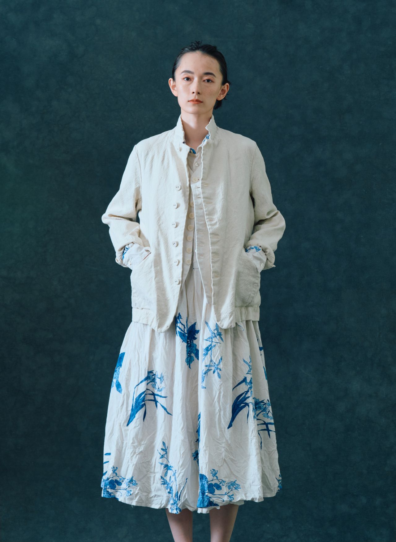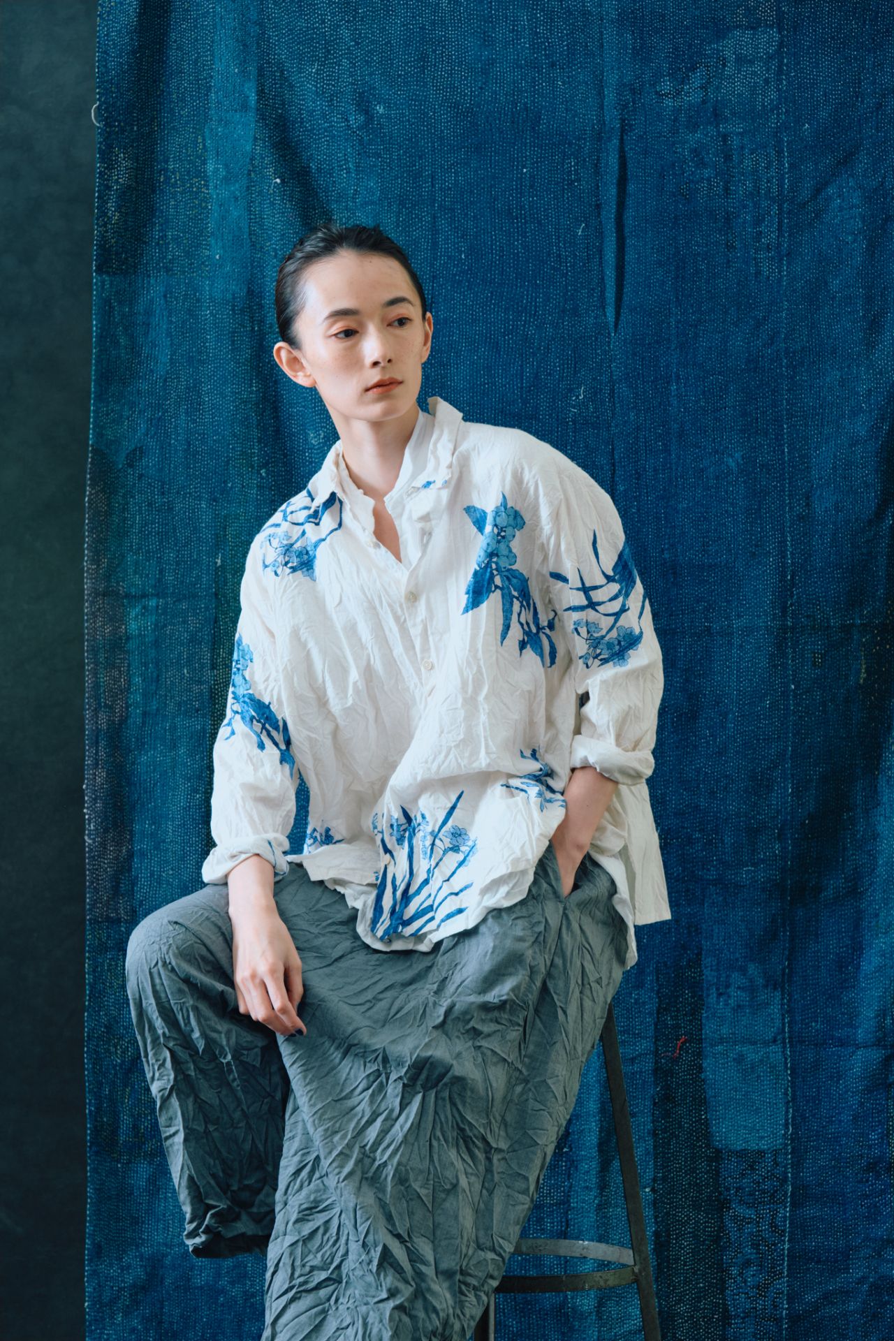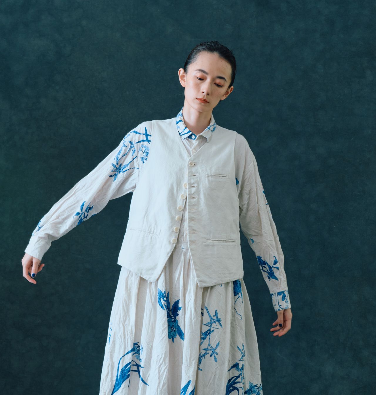 日本の凛とした草花をモチーフに、どこか異国の香りをまとわせたプリント。