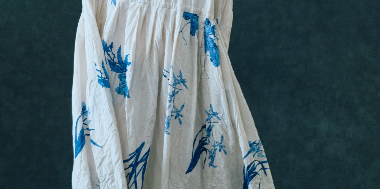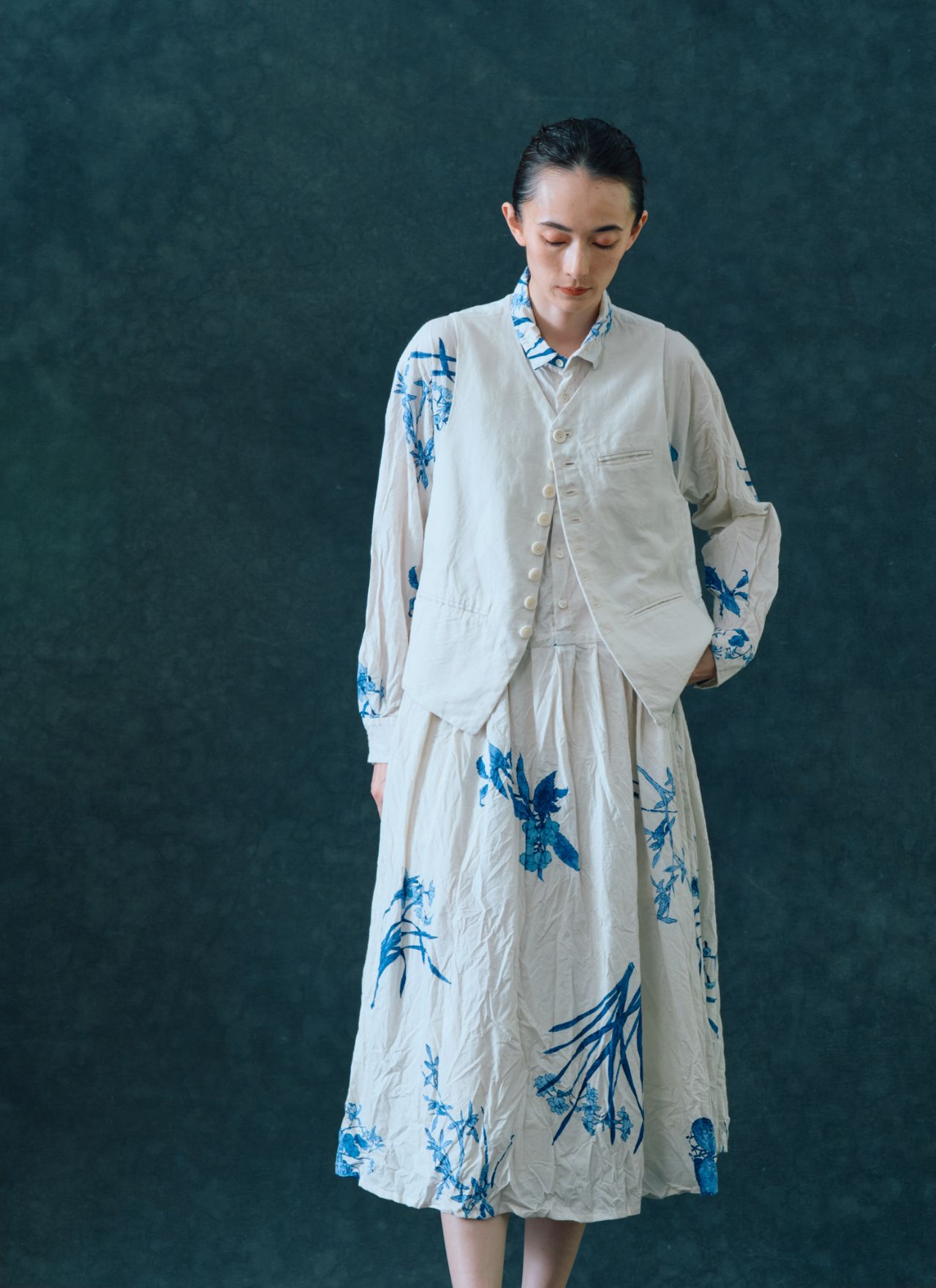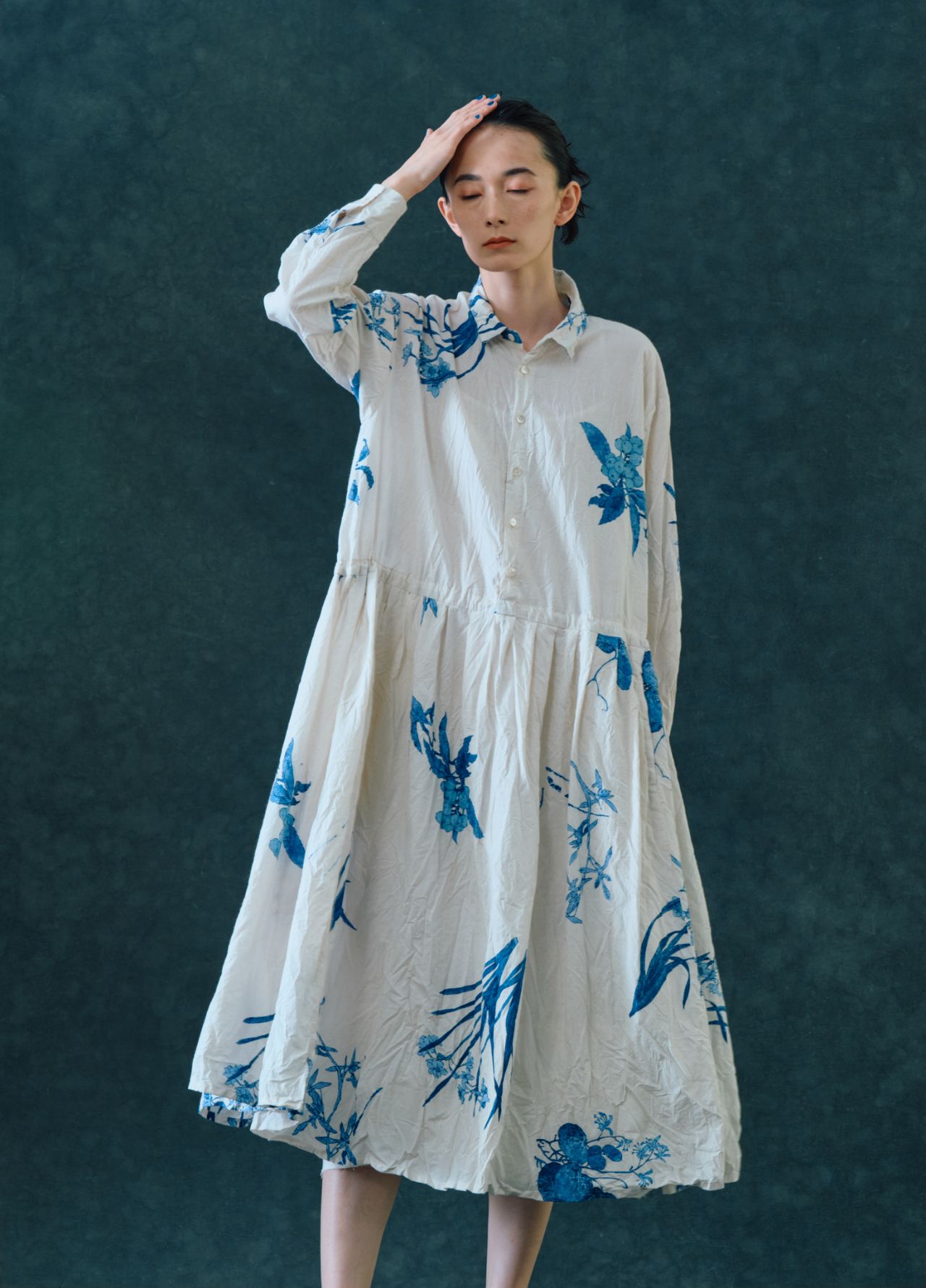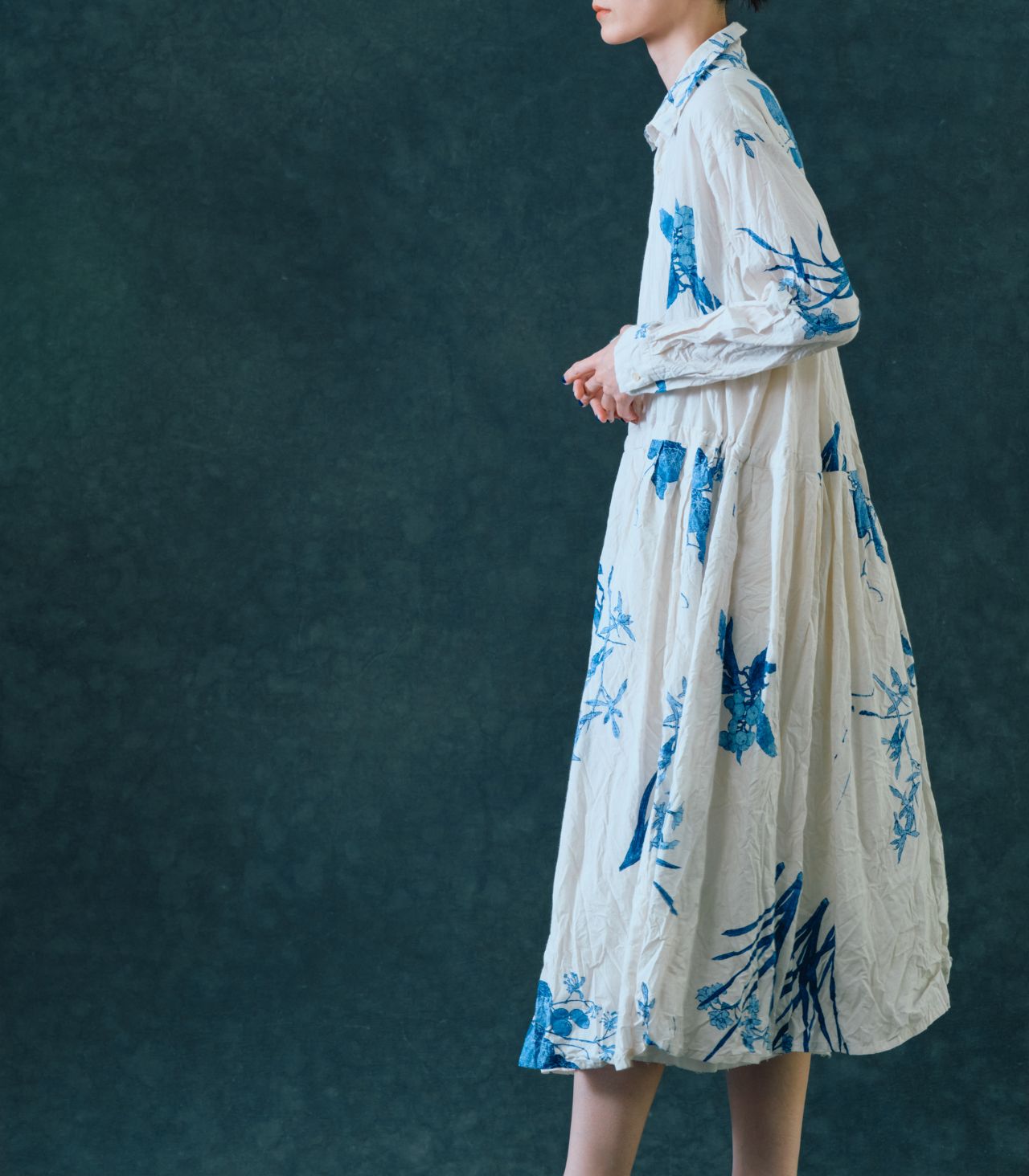 日本の凛とした草花をモチーフに、どこか異国の香りをまとわせたプリント。