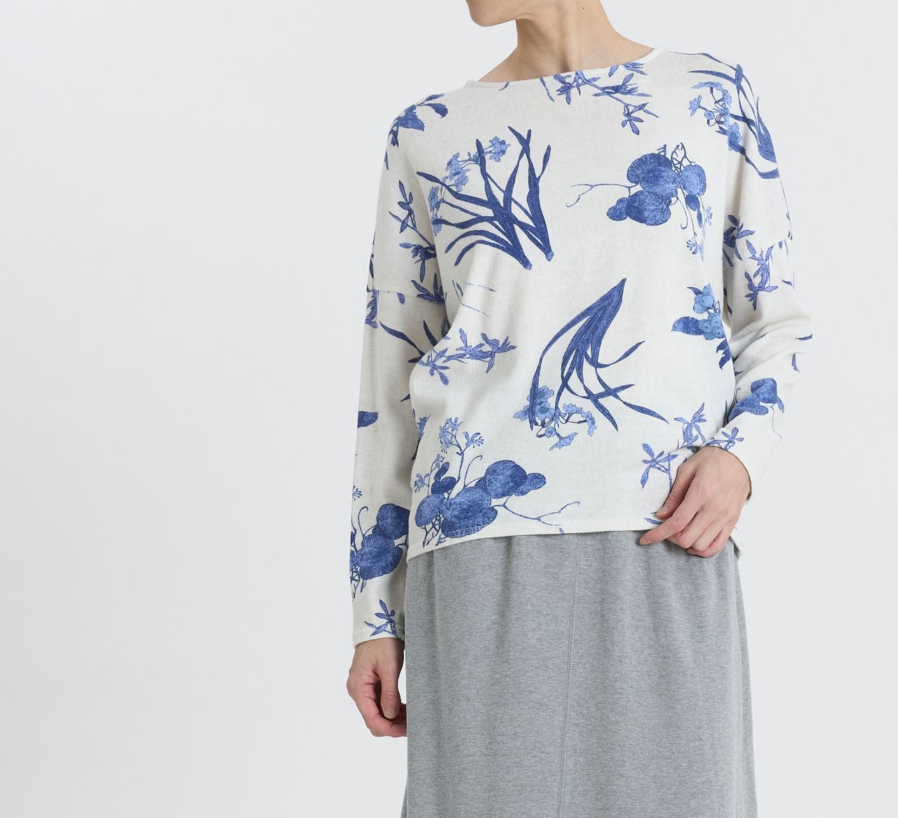no.1166 Japonism flowerプリント・ナチュラルネップムラ天竺 クルーネック ¥25,300