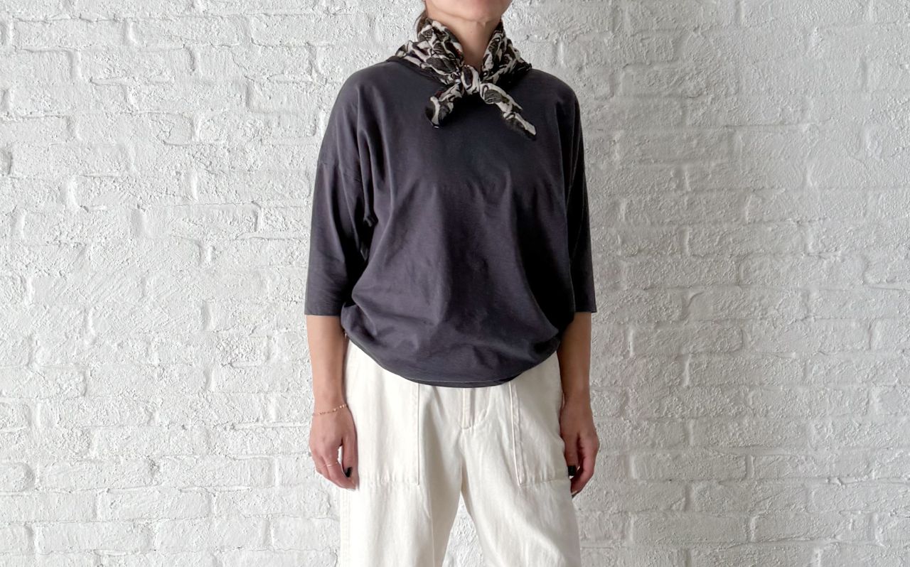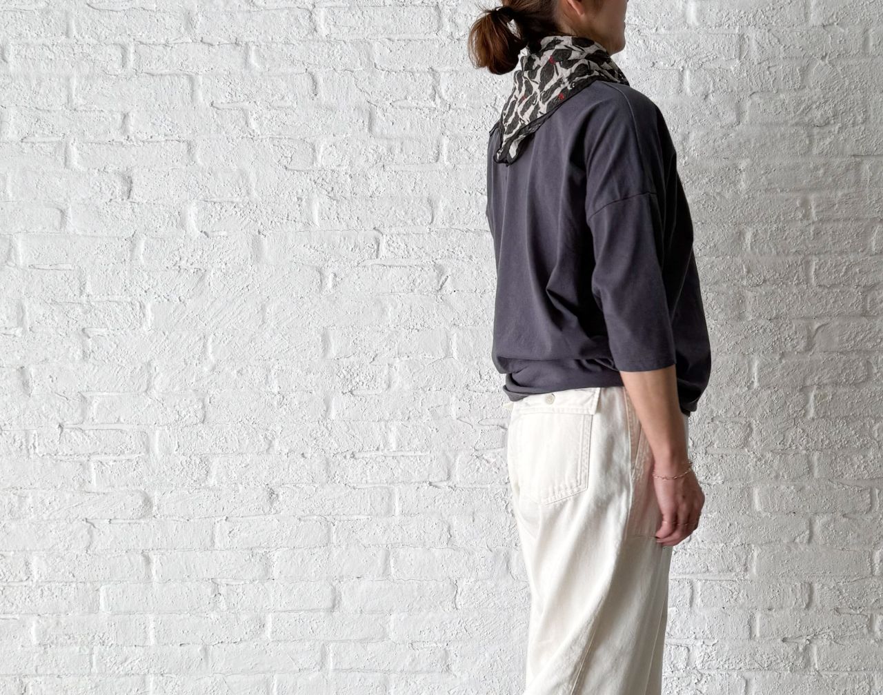 バッグプリントTシャツとの合わせもかわいいです。