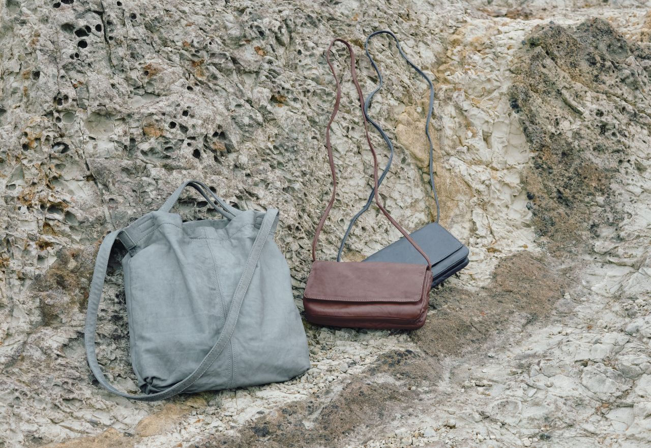 左:no.0593 2WAY ハンドムラ染めレザートートバッグ ¥24,200