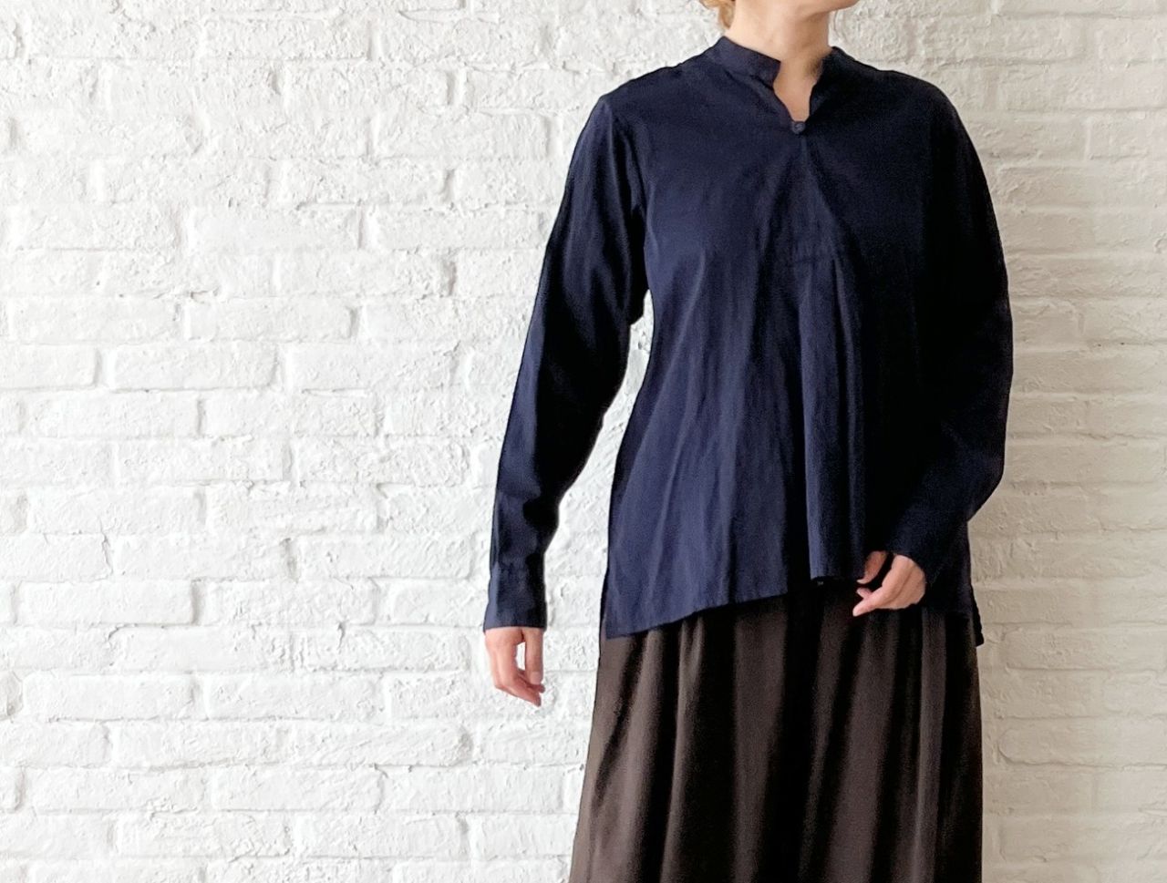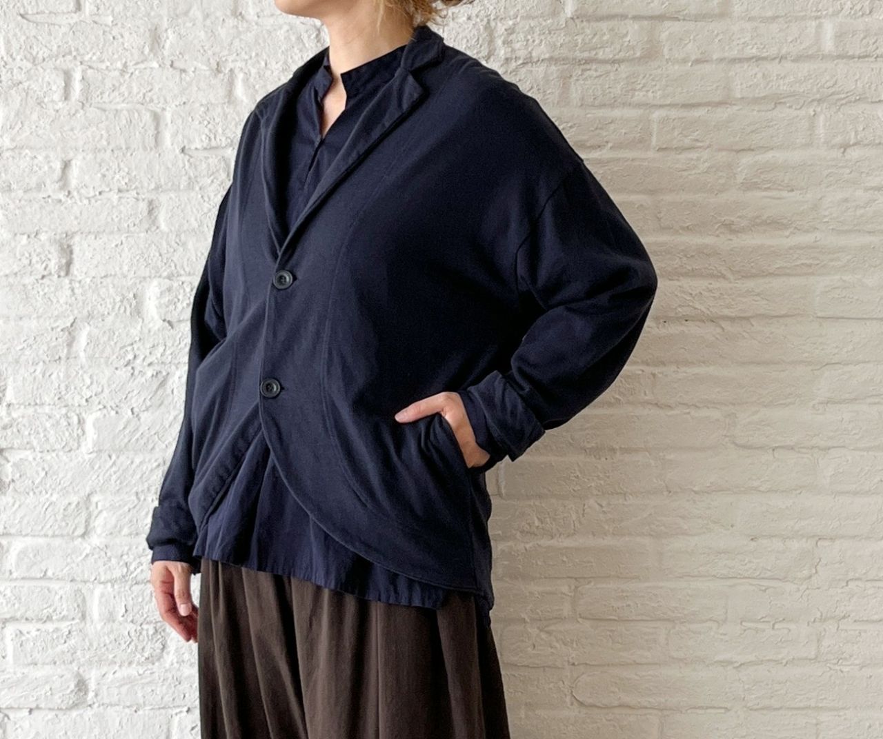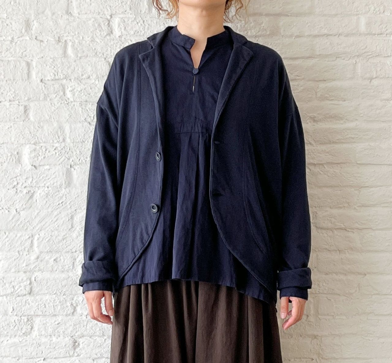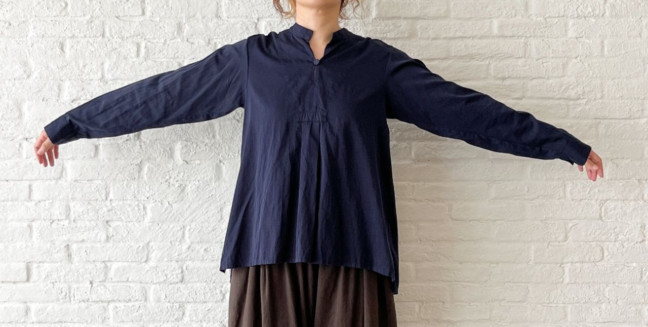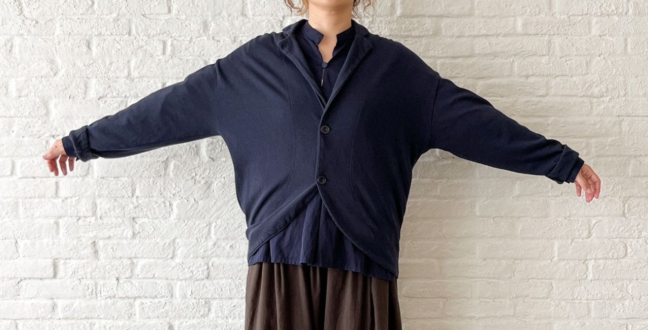 ノースリーブの上に羽織っても心地良い、柔らかな肌触りです。