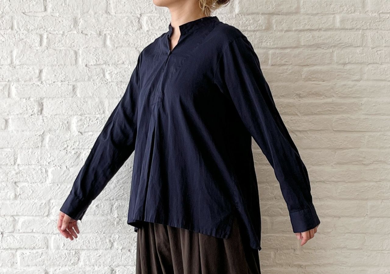 光沢が綺麗なコットンサテン素材で作った、きちんと感あるブラウス。