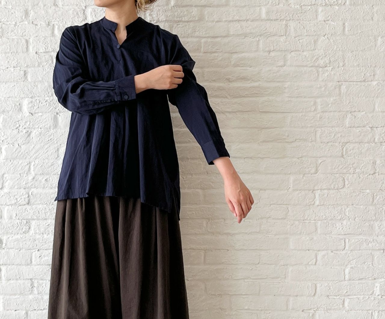 サラッとしてストレッチ感もある麻レーヨン素材は、普段使いにもおすすめの素材です。