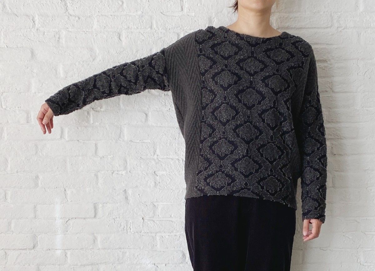 クロ×グレーでも、柄がしっかりしているのでポイントになります。