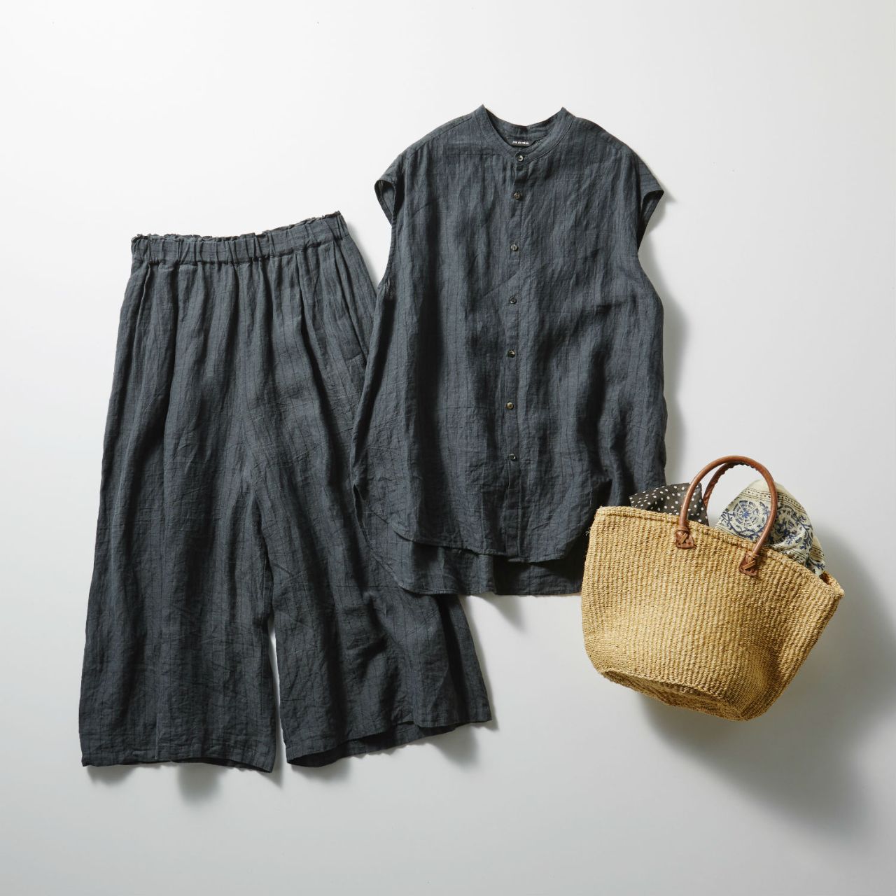家の中だけではもったいないラウンジウェアと、カゴバッグ。