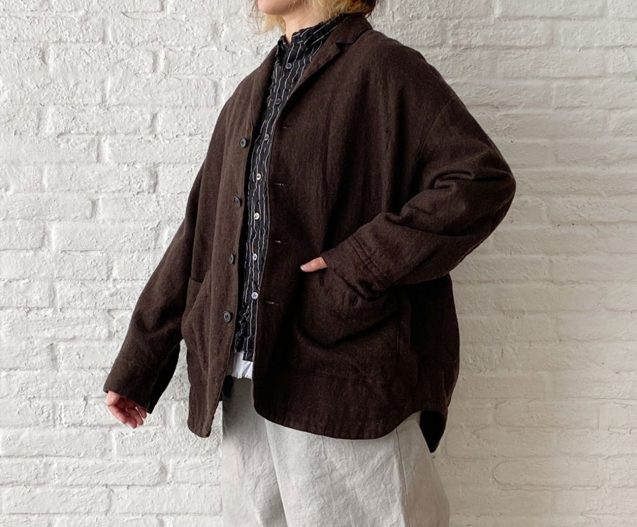no.3118【SALE 2BUY more 10%OFF】先染めコットンウール綾タンブラー ジャケット