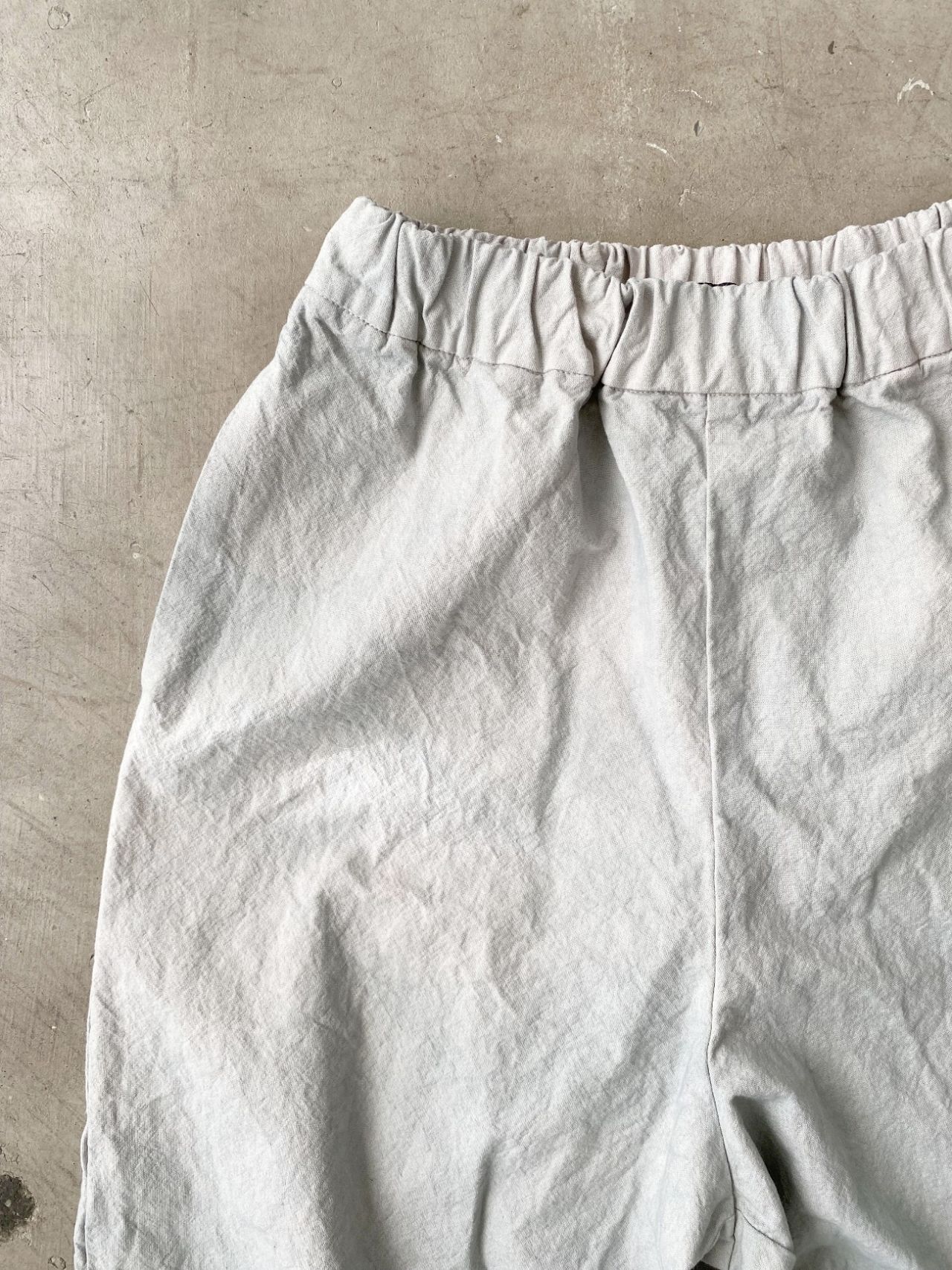 1周ぐるりと入った紐+ゴムで、ウエストの収まりが良く履きやすい仕様です。