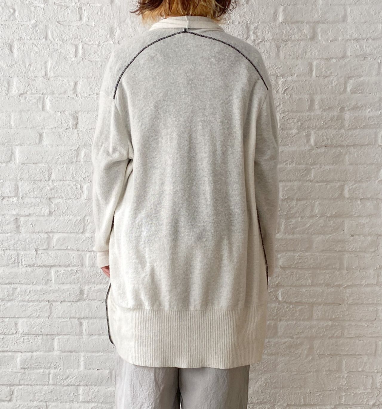 no.2273【W point】アルパカシャギー配色ステッチ ロングカーディガン