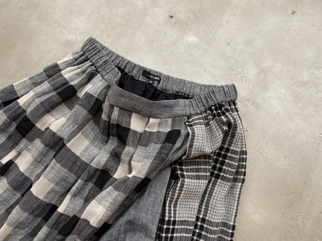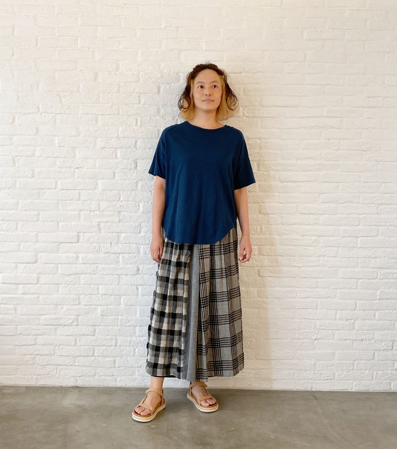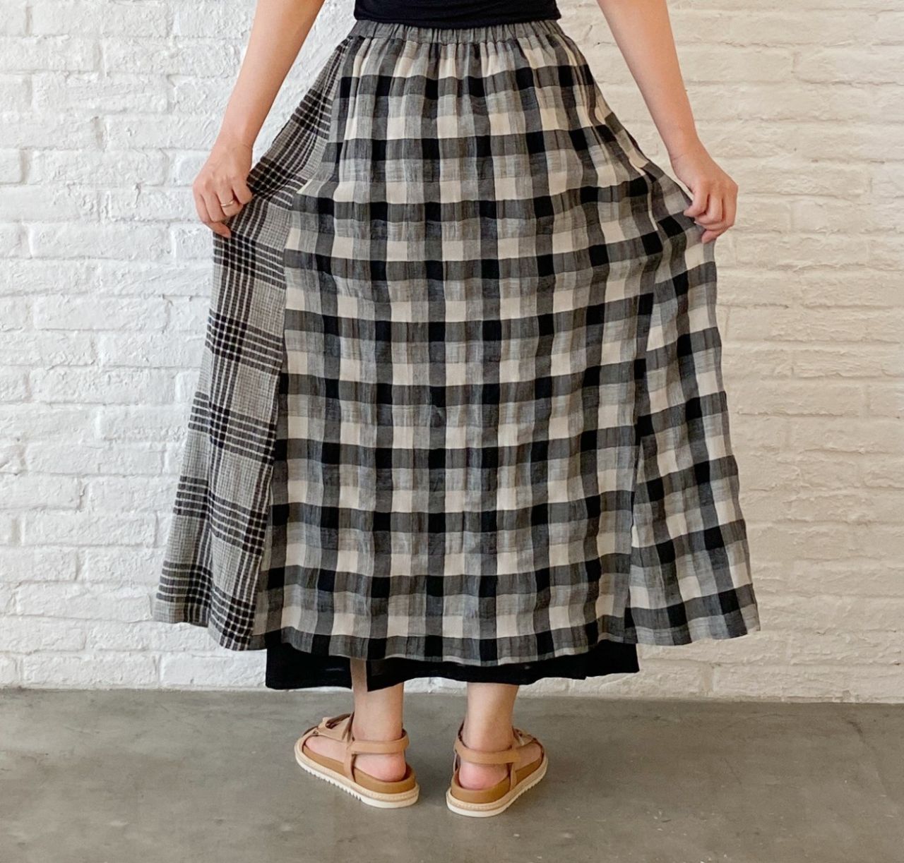 ポケットがないスカートなので、ウエストを回して2つのチェック柄が見えるように着ました。
