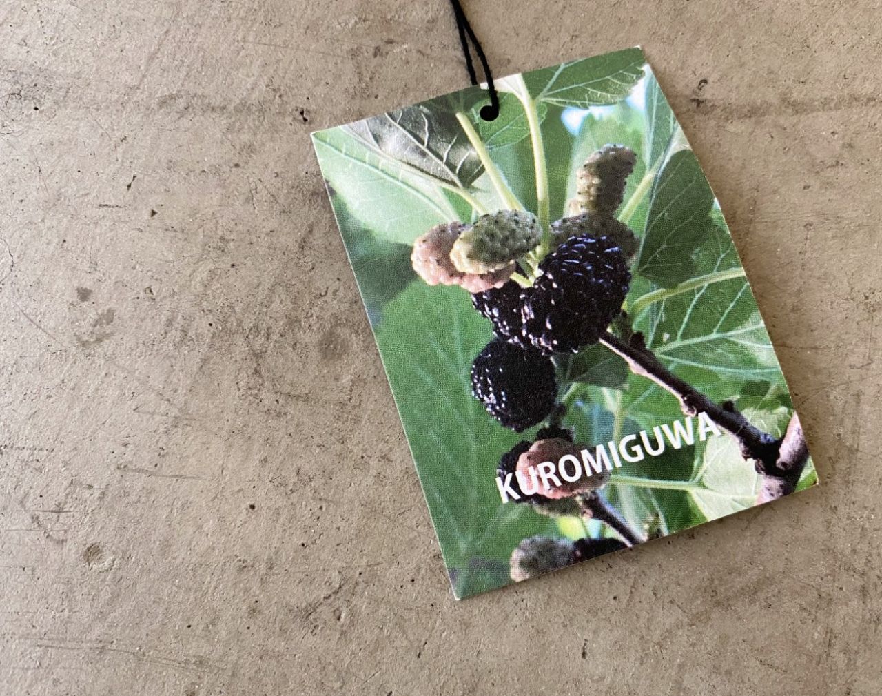 桑の実を使用。 桑の実の成分であるアントシアニンをアルカリ性にさせて染色した。