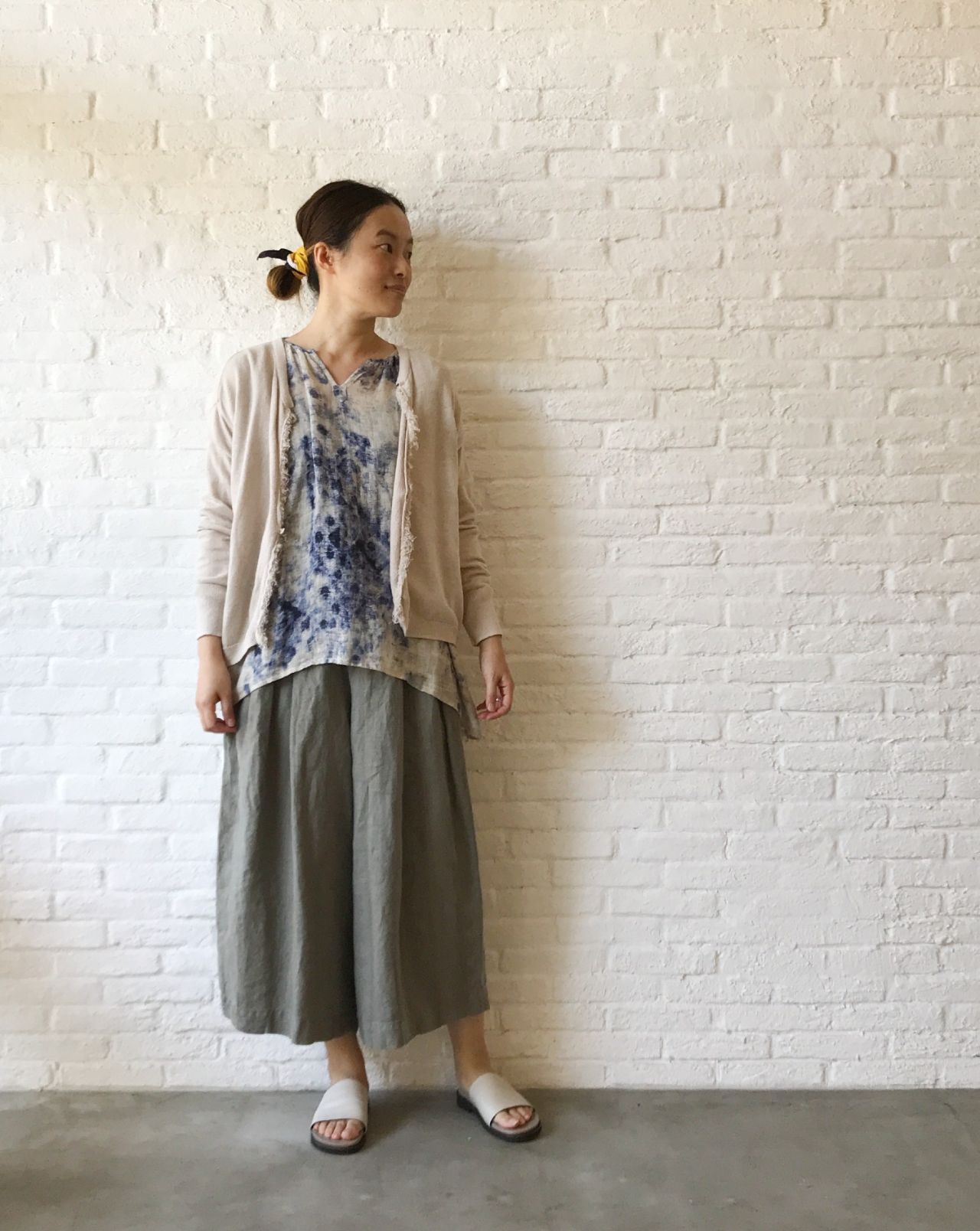 さて本日は、リネン素材のトップスで 着回しコーディネート のご紹介です。