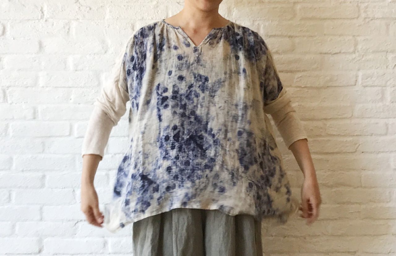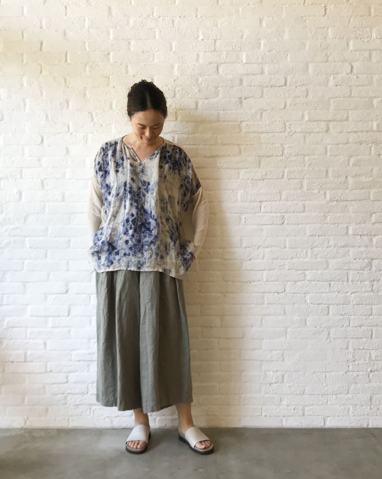 《着回しコーディネート》麻ボイルプリント 長袖プルオーバー