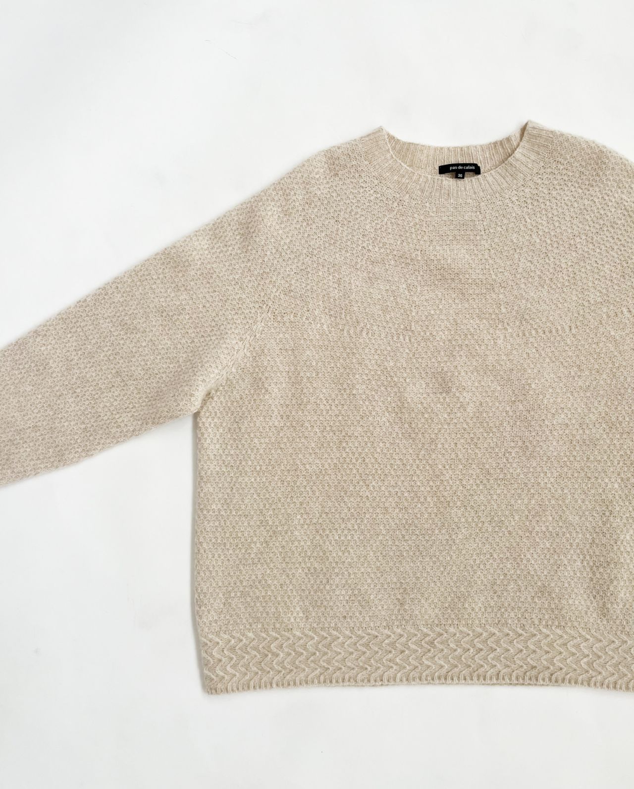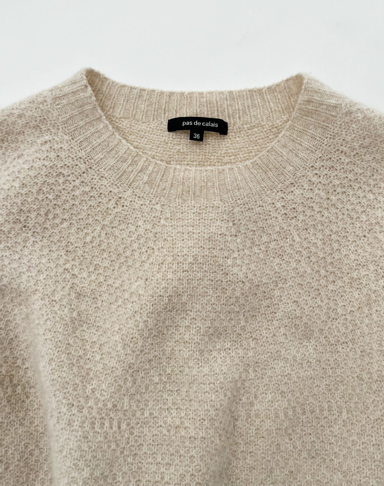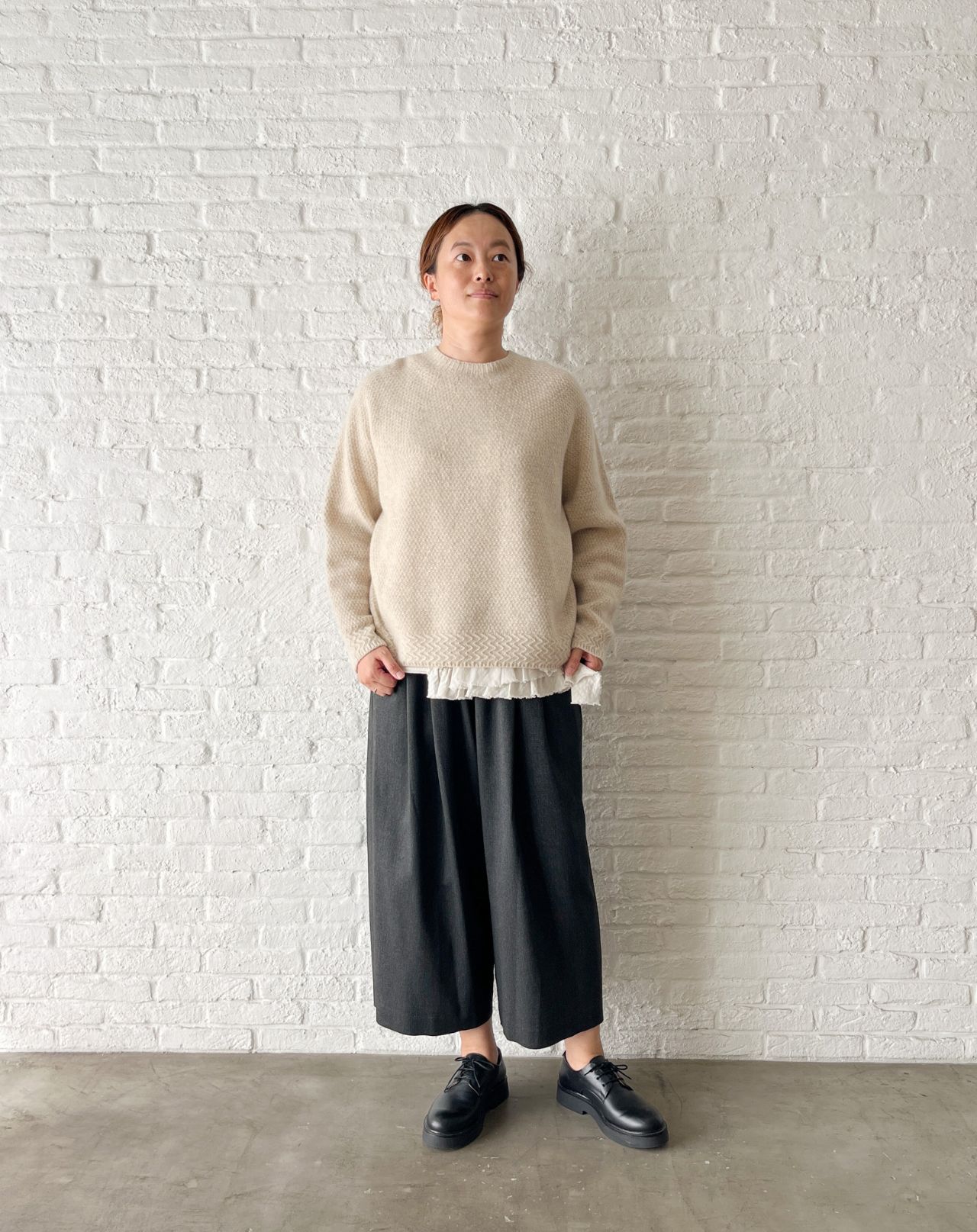 シンプルなクルーネックニットながらも、編地が非常にかわいくてポイントに!