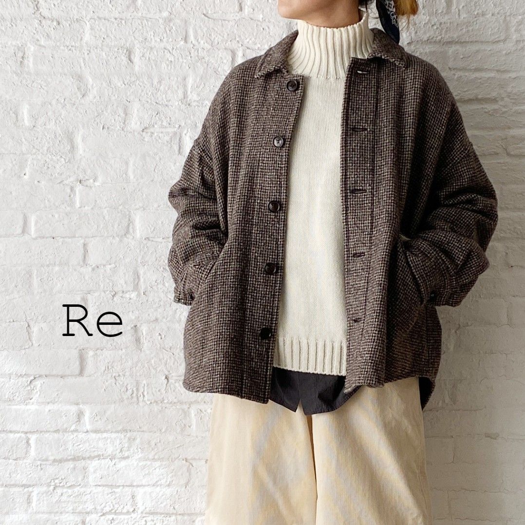 ポリエステルですが、ウールライクで温かみを感じる素材感。