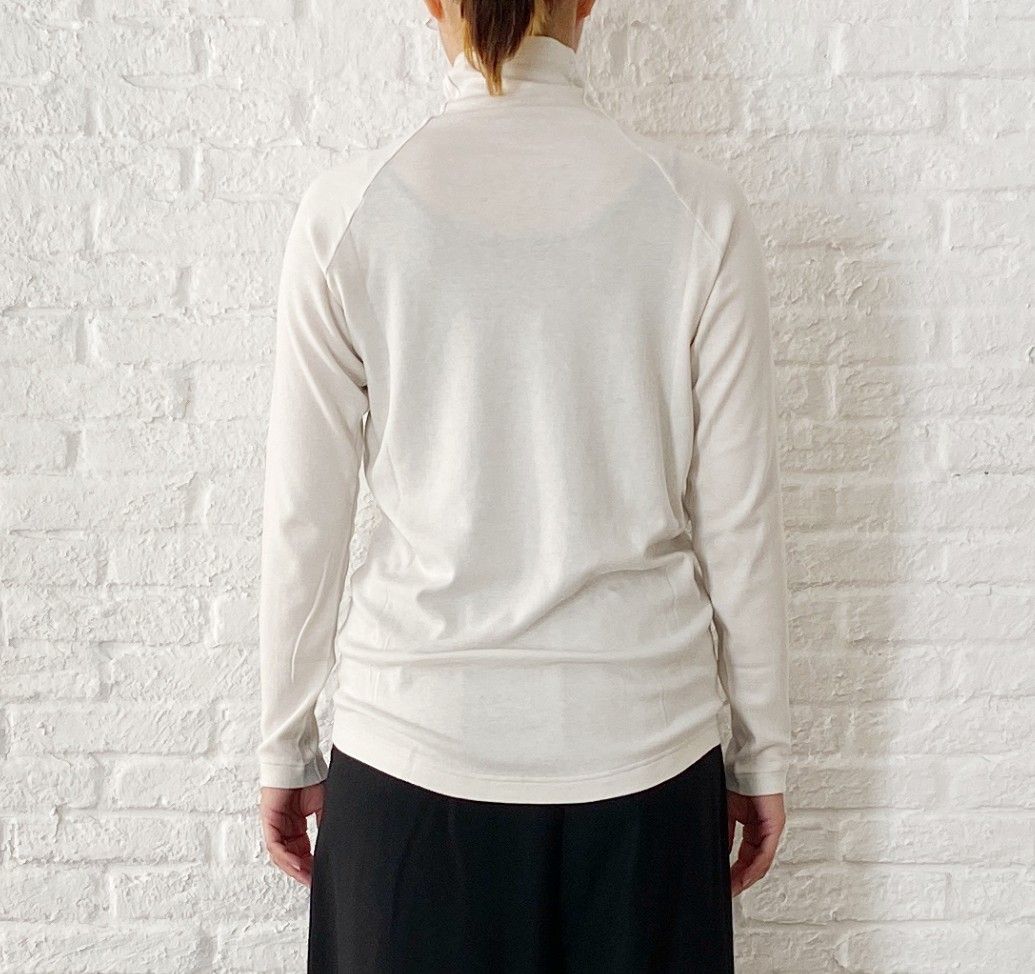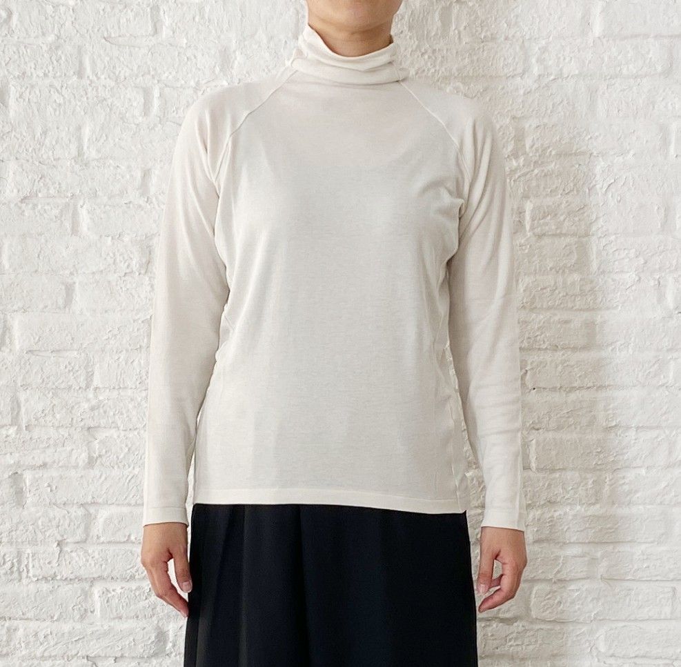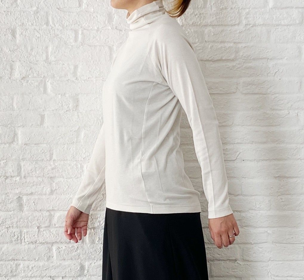 心地良いストレッチ感があり、首元も窮屈にならないカットソー素材のタートル。