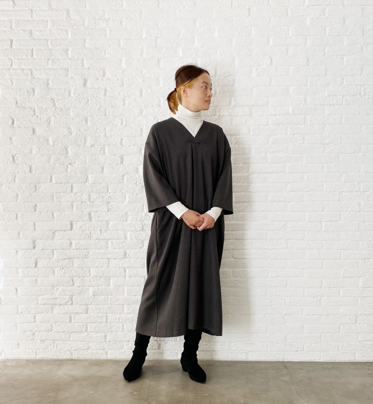 身幅も袖もゆったりしているので、寒くなってきましたし、重ね着スタイルがおすすめです。